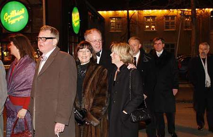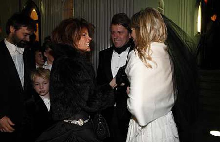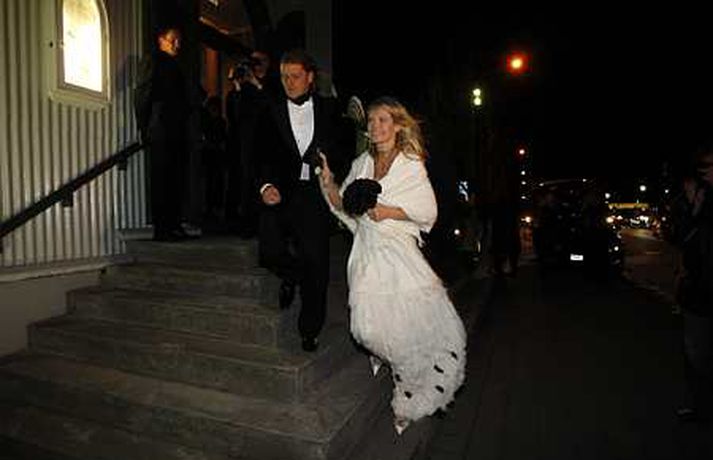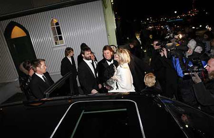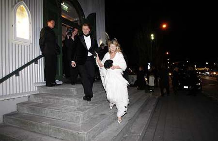 Vísir var á staðnum þegar tvær af ríkustu fjölskyldum landsins tengdust saman í gær. Jón Ásgeir Jóhannesson, sonur Jóhannesar í Bónus og Ingibjörg Pálmadóttir, dóttir Pálma í Hagkaupi, giftu sig í Fríkirkjunni. Brúðkaupið fór fram í Fríkirkjunni og hófst athöfnin klukkan 17.30. Það var séra Hjörtur Magni sem gaf skötuhjúin saman og sameinaði þannig Bónus- og Hagkaupsfjölskyldurnar í heilögu hjónabandi. Í úttekt sem tímaritið Sirkus gerði í sumar voru hreinar eignir Jóns Ásgeir metnar á 105 milljarða króna. Ingibjörg var í sömu úttekt metin á 30 milljarða og saman eru þau hjón því um 135 milljarða króna virði. Fjöldi fólks var viðstatt athöfnina og var Fríkirkjan orðin troðfull um klukkan fimm í dag. Þar mátti sjá Björgólf Guðmundsson og fleiri. Brúðhjónin óku svo frá kirkjunni í veisluna í Rolls Roys bifreið Jóns Ásgeirs sem hann lét flytja sérstaklega til landsins frá Englandi í tilefni dagsins. Um 300 manns var boðið í veisluna sem haldin er í Hafnarhúsinu. Búið er að reisa nokkurs konar viðbyggingu svo það væsi ekki um gestina.Árni Páll Árnason þingmaður ásamt eiginkonu sinni Sigrúnu EyjólfsdótturBjarni Ármansson ásmat eiginkonu sinni, Helgu Sverrisdóttur, formanni stjórnar Hjallastefnunar.Björgólfur Guðmundsson og Þóra HallgrímssonJón Ásgeir og Ingibjörg geisluðu af hamingju að athöfn lokinni.Daníel Ágúst Haraldsson söngvari. Hann kom fram með GusGus og NýDönsk í veislunni síðar um kvöldið.Ólafur Ragnar Grímsson og Dorrit MoussaieffJóhannes Jónsson í Bónus var svaramaður sonar síns í brúðkaupinu.Guðrún Tinna Ólafsdóttir og Karl Pétur JónssonStefán Hilmarsson endurskoðandi og Friðrika Hjördís GeirsdóttirBrúðurin ljómaði að athöfn lokinni.Gabríela Friðriksdóttir myndlistamaður ásamt vinkonu sinni.Hannes Smárason og eiginkona hans, Unnur Sigurðardóttir.Hjörtur Magni fríkirkjuprestur gaf brúðhjónin saman.Jóhannes í Bónus var augljóslega stoltur á brúðkaupsdegi sonar síns.Jón Óskar og Hulda Hákon myndlistafólkÞað var ansi kalt á brúðkaupsdeginum en Jón Ásgeir lét það ekki á sig fá.Lárus Welding forstjóri Glitnis ásamt eiginkonu sinni.Ögmundur Jónasson þingmaðurFjölmargir ljósmyndarar biðu eftir brúðhjónunum fyrir utan Fríkirkjuna.Ragnhildur Gísladóttir og Birkir KristinssonJón Ásgeir lét flytja inn Rolls Royce bifreið sína frá Bretlandi sérstaklega fyrir brúðkaupið.Magnús Scheving og Ragnheiður Pétursdóttir Melsted