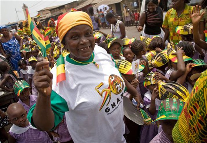 Ghana á afmæli í dag 6. mars 2007 09:53 AP Í dag halda Ghanamenn upp á 50 ára sjálfstæðisafmæli landsins. Landið var áður bresk nýlenda en fékk sjálfstæði árið 1957, fyrst Afríkulanda sunnan Sahara. Meira en 20 þjóðhöfðingjar eru gestir sjálfstæðisafmælisins auk þess sem fótboltahetjan Pele er mættur til að taka þátt í hátíðahöldum. Yfirvöld í Ghana eyddu sem svarar 2,6 milljörðum króna í undirbúning hátíðarhaldana sem verður framhaldið næsta árið. Þúsundir söfnuðust saman á Sjálfstæðistorgi í Akkra, höfuðborg landsins í morgun þar sem sjá máti leikgerð á sjálfstæðisyfirlýsingu landsins og glæsilega flugeldasýningu. Ghana er í Vestur-Afríku, stendur við Atlantshafið og á landamæri að Fílabeinsströndinni til vesturs, Búrkina Fasó til norðurs og Tógó til austurs. Akkra er höfuðborg og stærsta borg landsins. Rétt rúmlega 20 milljónir manna búa í landinu. Friðvænlegt hefur verið þar undanfarin 15 ár þar sem lýðræðisfyrirkomulag hefur fest sig í sessi. Frá Ghana kom ein vinsælasta sjálfstæðishetja Afríku, Kwame Nkrumah. Hann var kosinn forseti í kosningum þrátt fyrir að sitja í fangelsi snemma á sjötta áratugnum. Hann tók síðan við embættinu þegar landið fékk sjálfstæði árið 1957, fyrst Afríkuríkja. Honum var velt af stóli snemma árs 1966 í valdaráni sem að Bandaríkjamenn áttu hlut í. Hermt er að Lyndon B. Johnson, þá forseti Bandaríkjanna, hafi persónulega sagt leyniþjónustu Bandaríkjanna, CIA, að velta Nkrumah af stóli þar sem hann var orðinn of sósíalískur í stjórnarháttum. Mest lesið Andrew handtekinn á heimili sínu Erlent „Hann reyndi að lokka þær inn í bílinn“ Innlent „Ekki af hinu góða og líklegra til að valda skaða“ Innlent Forstjóri Deloitte sýknaður af ákæru fyrir kynferðisbrot Innlent Karl III: Réttlætið verður að hafa sinn gang Erlent Guðmundi Inga hafnað Innlent „Við systkinin erum bara vinnandi fólk“ Innlent Það sem farþegarnir sjá ekki í innanlandsfluginu Innlent Árekstur á Sprengisandi Innlent Tengiltvinnbílar þrefalt eyðslufrekari en framleiðendur segja Erlent Fleiri fréttir Karl III: Réttlætið verður að hafa sinn gang Viðbúnaðurinn ekki verið eins mikill frá innrásinni í Írak Andrew handtekinn á heimili sínu Rétta yfir fjórtán ára gömlum leigumorðingja Tjáningarfrelsistal tæknirisa „hreinn þvættingur“ „Grunlaus“ Wexner segist hafa verið gabbaður af Epstein Skíðahópur fórst í snjóflóði í Kalíforníu Fyrrverandi forseti Suður-Kóreu í lífstíðarfangelsi Umdeilt Friðarráð fundar í Washington í dag Tengiltvinnbílar þrefalt eyðslufrekari en framleiðendur segja Verjast fregna af viðræðum dagsins „Stjórinn“ að fá nóg og líkur á árásum Kennir Selenskí um misheppnaða gagnsókn Þrýsta á Alþjóðaorkumálastofunina að hætta við orkuskipti Reyna aftur á morgun Ákærður fyrir að skilja kærustuna eftir á fjallinu Yfir þúsund grunaðir barnaníðingar handteknir í hverjum mánuði Segir Trump setja ósanngjarnan þrýsting á Úkraínu Viðræður gengu ágætlega en ekkert fast í hendi Friðrik leggur land undir fót til að stappa stálinu í Grænlendinga Lindsay Graham hafi hellt sér yfir Frederiksen og sagt Trump geta tekið Grænland Bandarískir hermenn í Nígeríu Colbert bannað að birta viðtal við Demókrata Skutu eldflaugum á Hormuz-sund þegar viðræður hófust Reyna að stöðva ein átök og koma í veg fyrir önnur Mannréttindafrömuðurinn Jesse Jackson látinn Gamall sófi og múrsteinar komu upp um barnaníðing Viðræður Írana og Bandaríkjamanna að hefjast í Genf „Ég vil bara að þetta sé sanngjarnt. Að komið sé eins fram við alla“ Seldi Pokémon-spjald á yfir tvo milljarða Sjá meira