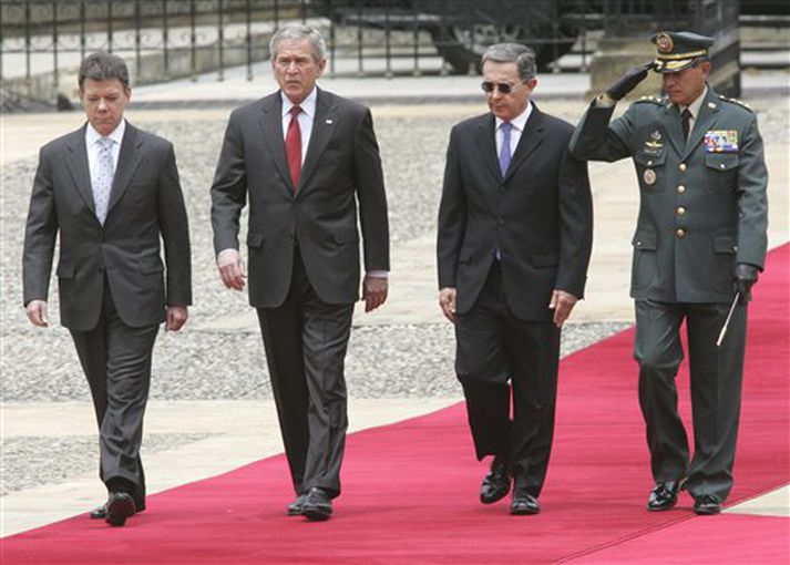 George Bush Bandaríkjaforseti lofar Kólumbíu meiri efnahagsaðstoð og viðskiptasamningum og lýsir yfir stuðningi við Alvaro Uribe forseta landsins. Bush er nú á ferðalagi um Suður-Ameríku og er nú í Kólumbíu. Bush lofaði Uribe og stjórn hans fyrir árangur í baráttunni gegn eiturlyfjabarónum og uppreisnarmönnum. Þetta er fyrsta heimsókn Bandaríkjaforseta til Bogotá í 25 ár. Ekki tóku allir honum jafn fagnandi en hundruð mótmælenda brenndu bandaríska fánann og höfðu uppi ólæti á meðan Bush ók í gegn um borgina í brynvarðri limósínu. Lögregla notaði táragas og vatnsslöngur til að dreifa mótmælendum. Bush hefur á ferðalagi sínu lagt áherslu á að styrkja tengsl við þá leiðtoga sem eru hallir undir Bandaríkinn en sífellt fleiri ríki álfunnar hafa kosið sér vinstrisinnaða leiðtoga og víða ríkir hörð andstaða við Bush vegna Íraksstríðsins og innflytjendastefnu hans. Sérstaklega hefur Hugo Chavez forseti Venesúela reynst Bush óþægur ljár í þúfu en hann hefur ferðast um álfuna og hitt leiðtoga á sama tíma.