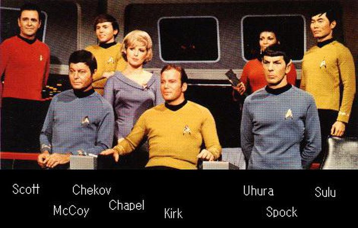 Scotty er kominn upp Óli Tynes skrifar 30. apríl 2007 13:20 Fyrsta áhöfnin á Enterprise. Scotty er lengst til vinstri. "Beam me up Scotty," er líklega ein af frægustu setningum kvikmyndasögunnar, þótt hún hafi í raun aldrei verið sögð í Star Trek þáttunum sem hún var hermd uppá. Scotty var Montgomery Scott, yfirvélstjóri á geimfarinu Enterprise. Réttu nafni hét hann James Doohan. Doohan lést fyrir tveim árum, 85 ára að aldri. Hann hafði óskað þess að aska hans yrði send út í geiminn og við þeirri ósk var loks orðið í gær. Þá var ösku hans skotið upp með eldflaug sem einkafyrirtæki smíðaði. Um eitthundrað manns fylgdust með uppförinni. Og nú er Scotty semsagt á braut um jörðu og bíður eftir félögum sínum Spock & co. Spursmál hvort hann bíði eftir Captain Kirk, sem er búinn að læra lögfræði og er sestur að í Boston. Þar rekur hann lögfræðistofu ásamt vini sínum Alan Shore. Best of Óli Tynes Erlent Mest lesið Ljósmyndir horfnar úr Epstein-skjölunum, þar á meðal ein af Trump Erlent Systir og amma drengs í meðferð létust í Suður-Afríku Innlent Grunuð um að koma til landsins til að brjóta á öldruðum Innlent Bindur vonir við Vor til vinstri Innlent „Þetta er alveg ásættanlegur samningur“ Innlent „Við erum pottþétt að koma út í mínus, hversu miklum vitum við ekki“ Innlent Deildi nöfnum skjólstæðinga á Instagram Innlent Leggja hald á skip á alþjóðahafsvæði undan ströndum Venesúela Innlent Á leið til Suður-Afríku með syni sína í meðferð vegna úrræðaleysis Innlent Nemandi réðst á kennara á jólaskemmtun í Ingunnarskóla Innlent Fleiri fréttir Ljósmyndir horfnar úr Epstein-skjölunum, þar á meðal ein af Trump Vilja dauðarefsingu af borðinu vegna hagsmunaáreksturs ráðherra Pútín sagður hafa valið Witkoff Gerðu umfangsmiklar árásir gegn ISIS í Sýrlandi Það helsta úr fyrsta skammti Epstein-skjalanna Epstein-skjölin birt Draga tilvist neðanjarðarhafs á Títan í efa Réðust á skip úr skuggaflotanum þúsundir kílómetra frá Úkraínu Enn fleiri myndir úr safni Epsteins: „En hún vill þúsund dali fyrir hverja stúlku“ Trump vill til tunglsins fyrir 2028 Herða reglur og ráðast í endurkaup á skotvopnum Morðinginn í Brown háskóla fannst látinn Evrópa samþykkir 90 milljarða evra lán til Úkraínu Rannsaka tengsl skotárásarinnar við annað morð Sex um borð í einkaþotu sem hrapaði Beita dómara ICC refsiaðgerðum vegna Ísrael Taka á kvenfyrirlitningu með sérstöku námskeiði fyrir drengi Hæðist að og smánar fyrrverandi forseta á „frægðargangi“ Frú Macron í klandri eftir ósmekkleg ummæli um femínista „Dr. Dauði“ í lífstíðarfangelsi fyrir að myrða tólf Ekki hafi verið rétt að benda á Skandia-manninn sem morðingja Palme Myndskeið birt af Reiner eftir morðin og fyrir handtöku Sér eftir að hafa ekki sagt Eli oftar hve heitt hann elskaði hann Segir „evrópsk svín“ vilja hagnast á falli Rússlands Auðgaðist ævintýralega á svikum og prettum Eldur í Tívolí Meina fólki frá fjölda ríkja að ferðast til Bandaríkjanna Nuddari gerði dóttur Reiner-hjónanna viðvart Bondi morðinginn formlega ákærður í 59 liðum Trump setur hafnbann á olíuskip á leið til og frá Venesúela Sjá meira