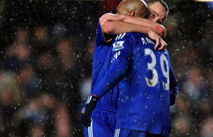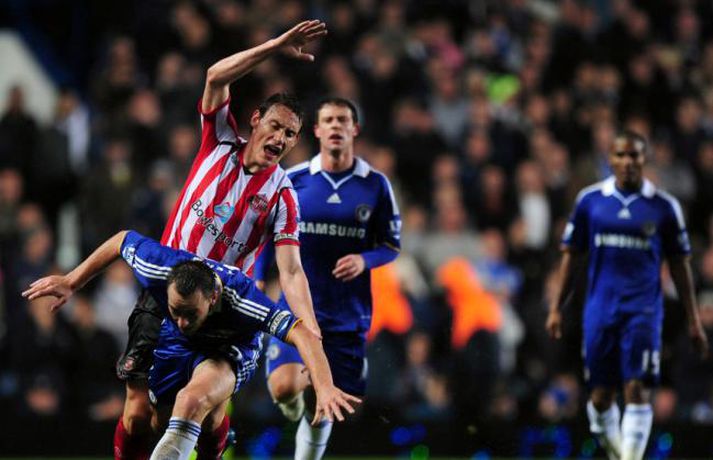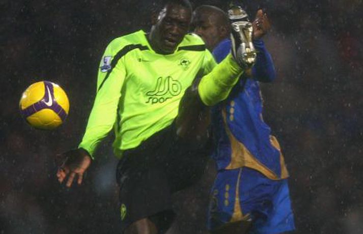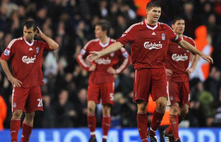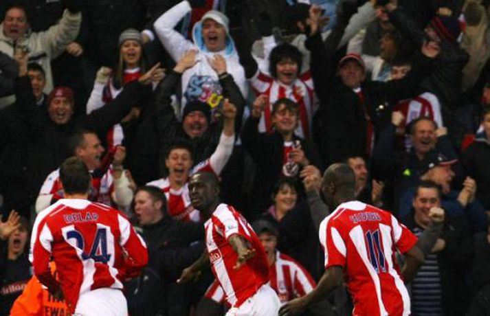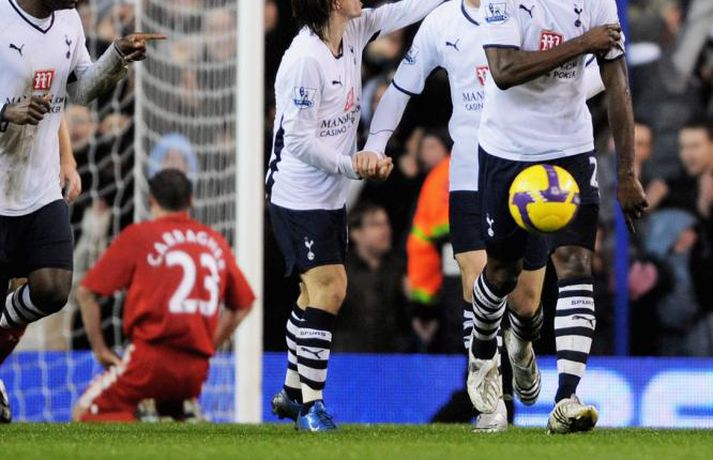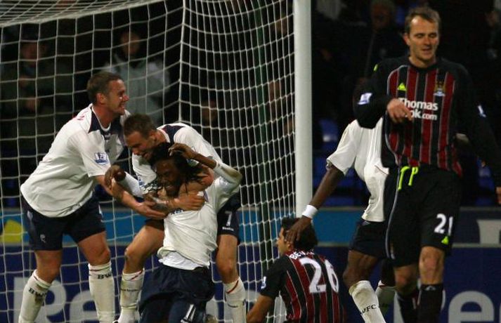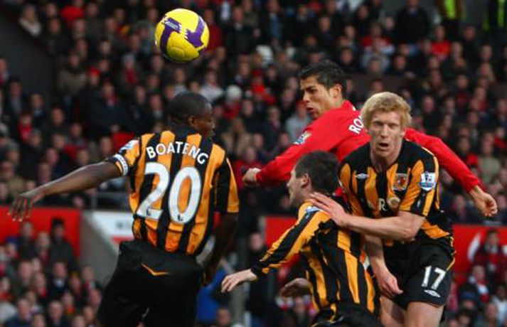 Það rigndi duglega á Englandi um helgina en það stöðvaði þó ekki knattspyrnumennina í ensku úrvalsdeildinni. Nóg var af athyglisverðum úrslitum þessa helgina. Botnlið Tottenham skoraði sigurmarkið gegn toppliði Liverpool í viðbótartíma, Hull skoraði þrjú mörk á Old Trafford en fékk engin stig, Arsenal tapaði óvænt fyrir Stoke og Chelsea slátraði Sunderland. Ljósmyndarar Getty Images voru á öllum leikjum helgarinnar í ensku úrvalsdeildinni og með því að smella á myndaalbúmið hér að neðan má rifja upp helgina í máli og myndum. Bolton vann virkilega mikilvægan 2-0 sigur á Manchester City á heimavelli sínum í gær. Bæði mörkin komu seint í leiknum.Nicolas Anelka skoraði þrennu fyrir Chelsea sem burstaði Sunderland 5-0. Hér fær hann knús frá John Terry.Hér er John Terry í baráttunni gegn Sunderland.Louis Saha kom inn sem varamaður og skoraði sigurmark Everton gegn Fulham.Cristiano Ronaldo að skora í 4-3 sigri Manchester United á Hull.Michael Carrick fagnar marki sínu gegn Hull ásamt Nani.Emile Heskey skoraði sigurmark Wigan gegn Portsmouth í viðbótartíma. Hér má sjá hann í baráttunni í leiknum.Theo Walcott var borinn af velli þegar Arsenal tapaði óvænt fyrir Stoke.Leikmenn Stoke fagna öðru marka sinna gegn Arsenal en þeir unnu mjög svo óvæntan 2-1 sigur.Robbie Keane heimsótti sinn gamla heimavöll og fékk misjafnar móttökur.Vonbrigði leikmanna Liverpool leyndu sér ekki þegar Tottenham skoraði sigurmarkið í viðbótartíma.Leikmenn Tottenham fagna sjálfsmarki Jamie Carragher.