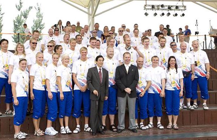Ólympíuleikarnir verða formlega settir með glæsilegri athöfn á föstudaginn. Íslenski hópurinn er að stærstum hluta mættur til Peking. Í dag var haldin móttökuhátíð fyrir íslensku þátttakendurna í Ólympíuþorpinu þar sem borgarstjóri Ólympíuþorpsins bauð hópinn velkominn og færði ÍSÍ að gjöf keramikplatta. Í upphafi athafnar var Ólympíufáninn dreginn að húni við undirspil Ólympíuóðsins. Þá var þjóðsöngur Íslands spilaður og íslenski fáninn dreginn að húni. Barnakór flutti lagið „Heart to heart"sem tengist ólympíuhreyfingunni og skólum í Peking. Vilhelm Gunnarsson, ljósmyndari Fréttablaðsins, var á staðnum og má sjá nokkrar myndir frá athöfninni í myndaalbúmi hér að neðan. VilhelmVilhelmVilhelmVilhelmVilhelm