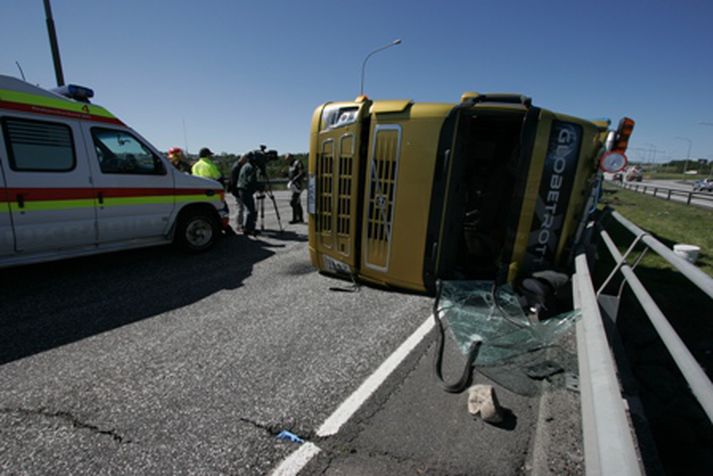Áfram umferðartafir í Ártúnsbrekku 18. júní 2008 15:57 MYND/Arnþór Umferðartafir verða áfram í Ártúnsbrekku til austurs en þar fór fullfermdur vörubíll á hliðina um hádegisbil í dag. Miklar umferðartafir hafa orðið meðan unnið er að því að fjarlægja bílinn og segir lögregla að þær verði að minnsta kosti til klukkan fimm. Tilkynnt var um slysið um klukkan kortér yfir tólf. Bílnum var ekið af afrein frá Reykjanesbraut inn á Vesturlandsveg með þeim afleiðingum að hann valt en lögregla rannsakar nú hvers vegna þannig fór. Ökumann flutningabílsins mun hafa sakað lítið en hann kvartaði þó undan eymslum í baki. Mest lesið Sjóðir að tæmast og uppsagnir í kortunum Innlent Þórdís Kolbrún blæs á sögusagnir um vistaskipti Innlent Bovino sendur til Kaliforníu og Leavitt dregur í land Erlent Engar kveðjur fengið frá Kristrúnu Innlent Níu ferðamenn á ísnum og heil rúta í viðbót á leiðinni Innlent Tveir grunaðir um að rækta hundruð kannabisplantna Innlent Mannfallið að nálgast tvær milljónir Erlent „Einfaldlega ósammála“ gagnrýni ráðuneytisins Innlent Enga ákvörðun tekið um Þórdísi Kolbrúnu Innlent Taka á móti fyrstu drengjunum í meðferð í lok febrúar Innlent Fleiri fréttir Kvaddi hundinn sem bjargaði lífi hennar uppi í rúmi Þrír eldar á sama tíma á höfuðborgarsvæðinu Innlit á Litla-Hraun í erlendri heimildarmynd Púðurtunnan Vestanhafs, þandar taugar og hörð lending Engar kveðjur fengið frá Kristrúnu Borgarfulltrúi fer ekki aftur fram og hættir í Pírötum Ekki hægt að fullyrða að andlát hafi tengst Covid-19 bólusetningu „Einfaldlega ósammála“ gagnrýni ráðuneytisins Kynna einn frambjóðanda á dag næstu daga Ekki skrýtið að eitthvað bresti vegna álags á framlínustarfsmenn Tveir grunaðir um að rækta hundruð kannabisplantna Verkalýðshreyfingin úti á túni með sitt tal? Mál rússnesku fjölskyldunnar: Króatía sé talið öruggt land Enga ákvörðun tekið um Þórdísi Kolbrúnu Heiða tekur annað sætið í Reykjavík Meiri hveralykt af vatninu vegna viðhalds og viðgerðar Sjóðir að tæmast og uppsagnir í kortunum Heiða hefur ekki heldur svarað uppstillingarnefnd Helga Kristín gengur til liðs við Miðflokkinn Innleiða bílnúmeralesara til að athuga hvar bílar eru skráðir Stefnir í hallarekstur og uppsagnir hjá Stígamótum „Þetta er auðvitað glæsilegt fyrir flokkinn“ Þingfundi ekki frestað vegna handboltans Leitað að fleira fólki á lista Samfylkingarinnar í Reykjavík Þórdís Kolbrún blæs á sögusagnir um vistaskipti Eldur kviknaði í Strætó Starfslokasamningar kostað undirstofnanir fleiri hundruð milljónir Taka á móti fyrstu drengjunum í meðferð í lok febrúar Fannst vanta stemmningu í skólann og skipulögðu handboltamót Foreldrar loki á samskipti barna við ömmu og afa Sjá meira