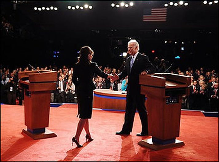 McCain sakar Biden um að fara með ósannindi 3. október 2008 16:12 Eftirmálar kappræðna varaforsetaframbjóðanda í Bandaríkjunum eru strax farnir að skýrast. John McCain hefur til að mynda þegar sent frá sér auglýsingu þar sem varaforsetaframbjóðandi Demókrata, Joseph Biden, er sagður hafa farið rangt með í kappræðunum. Í auglýsingunni er annars er vegar bent á ummæli Biden um orkumál og kolaframleiðslu sérstaklega. Í kappræðunum í sagðist Biden styðja við "umhverfisvæna" kolaframleiðslu en í auglýsingunni sem McCain birti í dag er sýnt myndbrot þar sem Biden heldur hinu gagnstæða fram. Þá sagði Biden einnig í gær að Barack Obama mundi ekki funda með forseta Írans verði hann kjörinn forseti en Obama sjálfur hefur sagst vera reiðubúinn til þess. Þótt þetta séu einu punktarnir sem dregnir eru fram í auglýsingunni er af fleiru að taka. Það sama má hins vegar einnig segja um Sarah Palin, varaforsetaframbjóðanda Repúblikana. Fox News hefur tekið saman lista yfir ummæli frambjóðandanna frá því í gær sem ekki standast skoðun. Hann má lesa hér Auglýsingu John McCain má sjá hér. Mest lesið Samkomulagið veiti Bandaríkjunum aðgang að auðlindum Grænlands Erlent Viðurkenni nú að hafa beitt Íslendinga efnahagslegri hernaðaraðgerð Innlent Algjörlega óásættanleg staða Innlent Davos-vaktin: „Við fengum allt sem við vildum“ Erlent „Ramma framtíðarsamkomulags“ náð um Grænland og hætt við tolla Erlent Hættu við lendingu í miðju aðflugi Innlent Skýrsla Félagsbústaða kolsvört Innlent Sveitarstjórnin og Penninn Eymundsson saman í eina sæng Innlent Unnu að því að stofna „Vélfag 2.0“ og tölvur með teikningum fjarlægðar Innlent Var á ráðstefnunni í Davos: „Fólk andaði kannski aðeins léttar“ Erlent Fleiri fréttir Samkomulagið veiti Bandaríkjunum aðgang að auðlindum Grænlands „Ramma framtíðarsamkomulags“ náð um Grænland og hætt við tolla Var á ráðstefnunni í Davos: „Fólk andaði kannski aðeins léttar“ X fyllist af gríni um Ísland/Grænland Þessi hönd er um sjötíu þúsund ára gömul Verði að eignast þetta „stóra fallega stykki af ís“ Fyrstu viðbrögð við ræðu Donalds Trump: „Ég bíð enn eftir að mennirnir í hvítu sloppunum nái í hann“ Höfuðstöðvar UNRWA í Jerúsalem rifnar Reyndu að fá dómara til að hlutast til um mál Le Pen Eldræða Carney: „Ef þú ert ekki við borðið þá ertu á matseðlinum“ Davos-vaktin: „Við fengum allt sem við vildum“ Hvað býr bakvið sólgleraugu Macron? Morðingi Abe dæmdur í lífstíðarfangelsi Vél Trump snúið við en ræðan enn á dagskrá Telur Trump gera mistök Einn látinn eftir annað lestarslys á Spáni Óvæntur blaðamannafundur: Las „afrekabókina“ og sýndi myndir af glæpamönnum Fæðingum fækkaði um 1,62 milljónir milli ára Varaði við lögmáli frumskógarins og hæddist að Trump Beiting hervalds ólíkleg en ekki útilokuð Ráðherra Trumps segir Evrópu móðursjúka Skutu flugskeytum fyrir tólf milljarða á einni nóttu Fyrsta árinu af fjórum lokið Fjórar hákarlaárásir á aðeins 48 klukkustundum Trump fer mikinn á Truth Social og virðist ætla sér Kanada Vöruðu við slæmum skilyrðum á brautinni Vitleysan „í þessum óþekka strák í Hvíta húsinu“ leiði vonandi til sjálfstæðis Skoða bann við nektarforritum eftir X-hneykslið Býður Pútín sæti í „friðarráði“ fyrir Gasaströndina Hættur að hugsa bara um frið fyrst hann fékk ekki Nóbelinn Sjá meira
