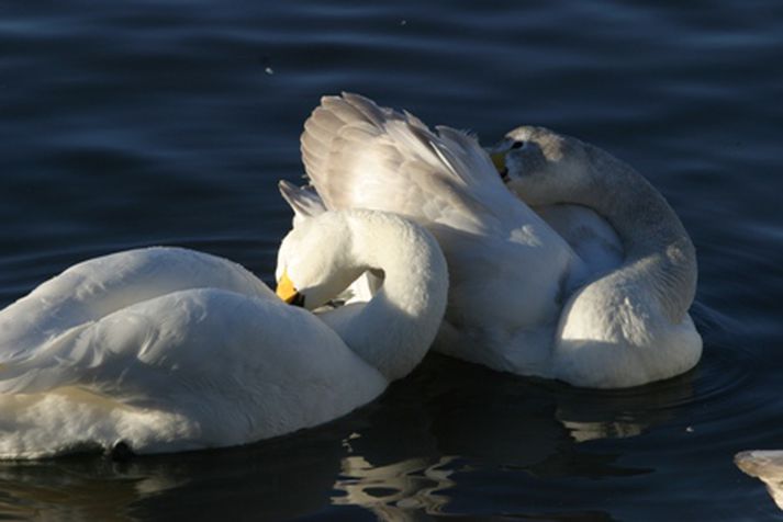 Framhaldssagan um álftaparið 17. júlí 2008 21:30 Sést hefur til álftarpars með fjóra unga á Rauðavatni og gæti það verið álftaparið sem hvarf af Árbæjarlóninu. Undanfarna daga hefur fréttastofa Stöðvar 2 reynt að komast að afdrifum álftafjölskyldu, pari með fjóra ófleyga unga, sem ekki hefur sést til frá því á föstudag í þar síðustu viku. Í gær fréttastofan frá nágrönnum við lónið sem sáu fyrsta föstudaginn í júlí karlmann sigla niður Elliðaárnar í návígi við álftirnar en þær hafa ekki sést þar síðan. Fréttastofunni bárust gærkvöldi og í dag ábendingar um að sést hefði til álftapars á Rauðavatni með fjóra unga. Þá sáu íbúar í Norðlingaholfti álftapar með fjóra unga arka þar um hverfið helgina eftir að álftirnar hurfu af Árbæjarlóninu. Þeir tóku svo eftir því degi síðar að álftirnar voru komnar yfir Suðurlandsveginn og að Rauðavatni. Þegar fréttastofa Stöðvar 2 gerði sér ferð upp að Rauðavatni í dag var þar engar álftir að sjá, aðeins aðrar fuglategundir, og því er gátan um afdrif fjölskyldunnar enn óleyst. Mest lesið Bríet og Pálmi takast á fyrir dómstólum Lífið „Þurfum að búa við það á meðan að vera með þennan ofbeldissegg“ Innlent Morðið á Pretti gagnrýnt úr ólíklegustu áttum Erlent Ungir Sjálfstæðismenn fengu áfengi í ferð með Vilhjálmi og fóru svo á kjörstað Innlent Svarar gagnrýni vegna umdeildra gistihýsa í Skaftafelli Innlent Inni í húsinu þegar eldur logaði í fjölbýlishúsi Innlent Flugferðum aflýst og hvatt til heimavinnu vegna snjókomu Erlent Brunavarnir Suðurnesja luku störfum á öðrum tímanum í nótt Innlent Faðirinn í hungurverkfalli í lokaðri móttökustöð og móðirin ein með börnin Innlent Handtekinn grunaður um íkveikju Innlent Fleiri fréttir Tekur ekki undir greiningu Heiðu Bjargar um konur í Samfylkingunni Svarar gagnrýni vegna umdeildra gistihýsa í Skaftafelli Brunavarnir Suðurnesja luku störfum á öðrum tímanum í nótt Handtekinn grunaður um íkveikju „Þurfum að búa við það á meðan að vera með þennan ofbeldissegg“ Inni í húsinu þegar eldur logaði í fjölbýlishúsi Náttúruverndarsamtök fjarlægðu stíflu Ungir Sjálfstæðismenn fengu áfengi í ferð með Vilhjálmi og fóru svo á kjörstað Loðna fundist á stóru svæði Metfjöldi vill stíga á svið með Íslenska dansflokknum Faðirinn í hungurverkfalli í lokaðri móttökustöð og móðirin ein með börnin Aðeins tíu prósent sem leita til Stígamóta kæra ofbeldið Spyr hvort að Rúv finnist hún „hundleiðinleg t***a“ „Örstutt þunglyndi yfir niðurstöðunum“ Maðurinn er fundinn Kerfið hafi brugðist Sjálfstæðismenn mynda bandalag á Akureyri Sundabraut og Fljótagöng verkefni innviðafélagsins Háværar flugvélar sem vöktu athygli í gær voru á æfingu „Fyrst og fremst er verið að hafna oddvitanum“ Fyrrverandi yngsti þingmaður sögunnar skiptir um flokk og fer fram Heiðu hafnað og fjöldi niðurfellinga heimilisofbeldismála hjá lögreglu Segir Heiðu hafa átt betra skilið Icelandair aflýsir flugferðum Fyrrverandi ráðherrar ræða alþjóðamálin Gripnir á 165 á áttatíu götu og á 157 á sextíu götu Tvö pör handtekin grunuð um líkamsárásir Munaði litlu að nýliði skákaði borgarstjóra Stóra verkefnið að vinna aftur traust borgarbúa Gríðarleg vonbrigði að reyndri konu sé ekki treyst Sjá meira