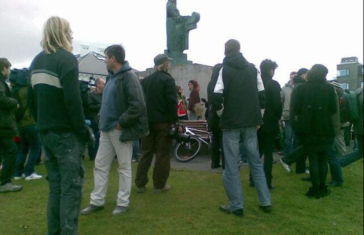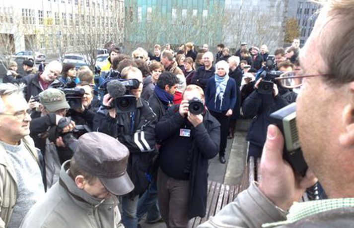 Fjölmenni á Seðlabankamótmælum 10. október 2008 12:30 Talið er að á bilinu 300-500 manns hafi safnast saman nú í hádeginu á Arnarhóli þar sem boðað hafði verið til mótmæla. Þar var krafist afsagnar bankastjórnar Seðlabankans vegna þess öngstrætis sem peningamálastefna þjóðarinnar er komin í og þeirra hörmunga sem dynja á þjóðinni. Gjallarhorn var á staðnum og létu nokkrir í sér heyra á Arnarhóli áður en gengið var að Seðlabankanum og mótmælunum haldið áfram. Þá tók tónlistarmaðurinn KK lagið á mótmælunum. MYND/AntonMYND/Stöð 2MYND/Stöð 2MYND/AntonMYND/AntonMYND/Anton Mest lesið Davos-vaktin: Útilokar að beita hervaldi á Grænlandi en krefst viðræðna Erlent Sex sagt upp í menntamálaráðuneytinu Innlent Miðflokkurinn nálgast Samfylkingu Innlent Stjórnarformaður Vélfags handtekinn í aðgerðum saksóknara Innlent Fyrstu viðbrögð við ræðu Donalds Trump: „Ég bíð enn eftir að mennirnir í hvítu sloppunum nái í hann“ Erlent „Það er ekki laust við að það fari um mann“ Innlent Vél Trump snúið við en ræðan enn á dagskrá Erlent Hvað býr bakvið sólgleraugu Macron? Erlent Vinnuslys þar sem maður „missti höndina inn í vals“ Innlent Unnu að því að stofna „Vélfag 2.0“ og tölvur með teikningum fjarlægðar Innlent Fleiri fréttir Unnu að því að stofna „Vélfag 2.0“ og tölvur með teikningum fjarlægðar Drógu dauðan hval lengst út í hafsauga Segir gagnrýni minnihlutans til þess gerða að dreifa athygli Nú má heita Friðálv Gletting Lucíuson Náðu sex byssum úr byssuskáp á Akureyri Parísarheimsókn fjárlaganefndar „mjög fróðleg“ Með 29 kíló af maríjúana í töskunum Brúnni yfir Helluvatn lokað í fimm vikur Stjórnarformaður Vélfags handtekinn í aðgerðum saksóknara „Það er ekki laust við að það fari um mann“ Miðflokkurinn nálgast Samfylkingu Milljarða útspil meirihlutans „fullkomlega ábyrgðarlaust“ og lykti af prófkjörsbaráttu Ákærður fyrir nauðgun á nýársdag Markverð tíðindi í nýrri Maskínukönnun um fylgið á landsvísu Hátt í tíu þúsund manns án atvinnu í desember Sex sagt upp í menntamálaráðuneytinu Hættur í Viðreisn og sækist eftir formennsku í SI Vinnuslys þar sem maður „missti höndina inn í vals“ Baráttan um Framsókn muni snúast um sögulega stöðu Ráðherra segir ríkisvaldið gefa í með framkvæmdir Sverrir Bergmann hættir í bæjarstjórn Norðfirðingar gleðjast að sjá loðnuna birtast Annasamasti dagur á bráðamóttöku í lækna minnum Neituðu að greiða starfsfólki á leið í eigin rekstur uppsagnarfrest Gríðarleg fjölgun hótana og dæmi um að setið sé fyrir lögreglumönnum Kvaðst hafa drepið fjölskylduna og ætlað að stinga sig í hjartað Ofbeldi gegn lögreglumönnum magnast og baráttan hafin um Framsókn Nemi í jarðfræði hlaut Nýsköpunarverðlaunin „Kanntu ekki mannasiði mannfjandi?“ Brynjar skýtur föstum skotum á Flokk fólksins Sjá meira