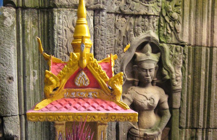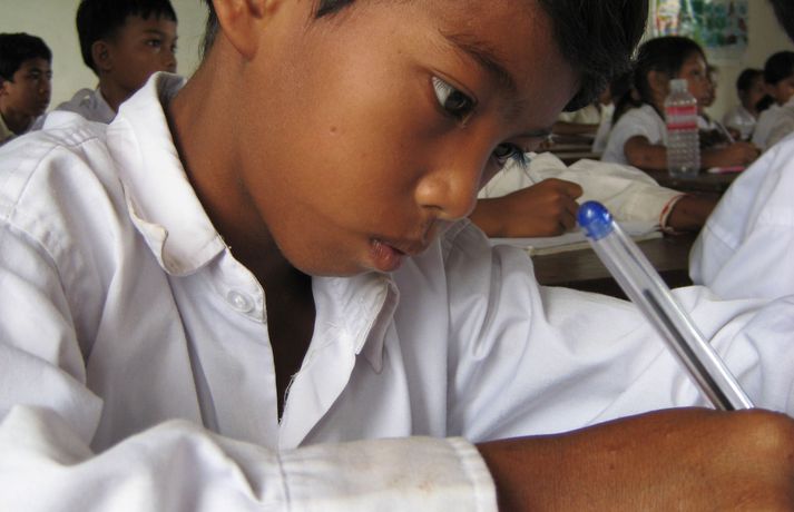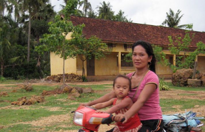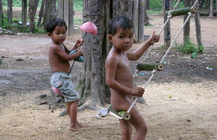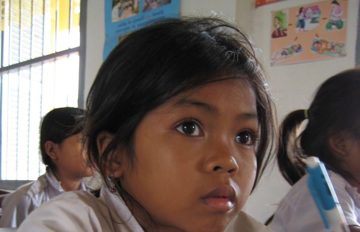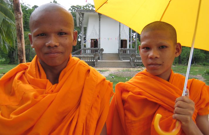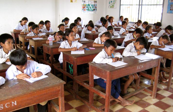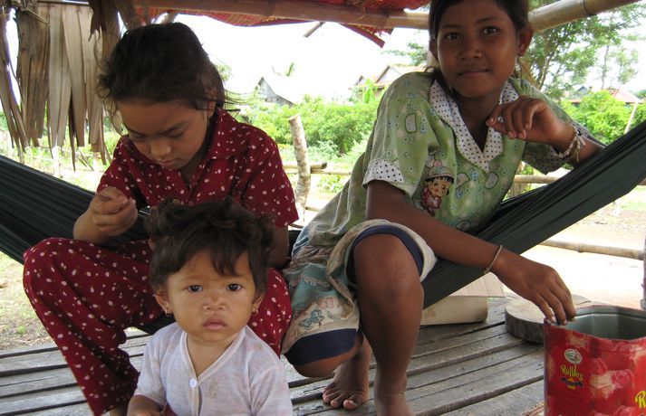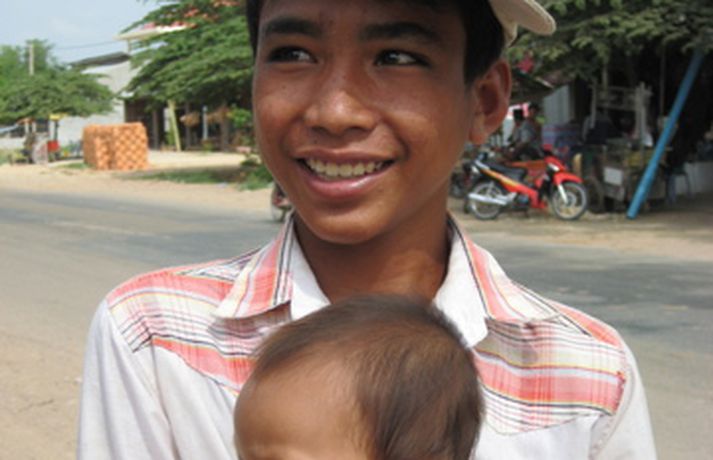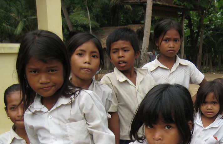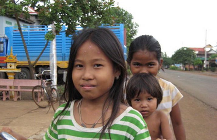 Um helmingur kambódísku þjóðarinnar eru undir 25 ára aldri. Um 50.000 börn eru án menntunar sem jafngildir fjölda allra grunnskólabarna á Íslandi. Kambódía á sér mikla en átakanlega sögu. Þriggja áratuga stíð setti mark sitt á þjóðina en friður komst á í landinu fyrir níu árum. Afleiðingar stríðsátakanna eru gífulegar. Rauðu Khmerarnir brutu niður innviði samfélagsins og reyndu að útrýma kennurum, læknum og menntafólki. Stór hluti þessarra þjóðfélagsþegna voru fangelsaðir í S-21 öryggisfangelsinu þar sem fangar voru yfirheyrðir, pyntaðir og teknir af lífi. Barnaheill á Íslandi hefur stutt verkefni Barnaheilla í Kambódíu í tæp þrjú ár í náinni samvinnu við Barnaheill í Noregi sem stjórnar verkefninu. Markmið samtakanna er að byggja upp skólastarf í sveitahéruðum þar sem heilu kynslóðirnar hafa farið á mis við menntun vegna átaka í landinu. Brynja Dögg Friðriksdóttir fréttmaður og Jakob Halldórsson tökumaður í Kompási, eru nýkomin frá Kambódíu þar sem þau kynntu sér uppbyggingastarf Barnaheilla í héraðinu Kampong Cham. ,,Þetta var einstök upplifun. Við heimsóttum meðal annars þorpið Veal Bompong sem er mjög afskekkt þorp í Kambódíu. Skærur voru í héraðinu allt fram til ársins 1999. Það hafa aldrei ferðamenn komið í þorpið og margir íbúanna hafa aldrei séð hvítt fólk áður. Fæstir hinna fullorðnu eru læsir og hreint vatn er af skornum skammti," segir Brynja Dögg. Mikil uppbygging hefur átt sér stað í landinu og ljóst er að miklar breytingar munu verða á efnahag landsins á næstu árum. ,,Þetta er stórkostlegt land með mikla menningararfleið. Þjóðarstolt Kambódíumanna, Angkor Wat hofið, ættu flestir að þekkja en landið hefur upp á svo miklu meira að bjóða," segir Jakob. Sýnt verður frá ferðinni í síðasta Kompásþætti vetrarins annað kvöld kl:21:50 á Stöð 2. BDFÞessi hópur fylgdist áhugasamur með þegar starfsmenn Barnaheilla komu til Meak skóla í Kampong Cham sýslu.BDFÖll skólabörn klæðast skólabúningum.BDFÞessar ungu stúlkur seldu snakk nálægt Chor Norm skólanum.BDFEinbeitingin leynir sér ekki hjá þessum unga strák.BDFÞað er ekki á hverjum degi sem gesti ber að garði í Veal Bompong. Margir þorpsbúar klæddu sig upp af tilefninu.BDFYfirmunkurinn í Veal Bompong var afar þakklátur Barnaheillum á Íslandi fyrir að byggja skóla í þorpinu. Petrína Ásgeirsdóttir, framkvæmdastjóri Barnaheilla, og Sakem Kong, aðstoðarverkefnisstjóri menntaverkefnisins, votta munkinum virðingu sína.BDF239 börn eru í skólanum í veal Bompong. Þrír kennarar sjá um kennsluna.BDFBDFKambódíumenn eru flestir búddatrúar.BDFKambódíumenn eru úrræðagóður og leiknir að flytja mikinn varning á reiðhjólum og vespum.BDFÁ rússneska markaðinum í Phnom Penh, höfuðborg Kambódíu er líf og fjör.BDFBDFSéð yfir Tonle Sap ánna í Phnom PenhBDFÞessi unga kona býr í fátækrahverfi í Phnom Penh. Hún á brátt von á sínu öðru barni en fyrra barn hennar dó. Hún nýtur stuðning móður sinnar en barnsfaðir hennar yfirgaf hana.BDFBDFBDFNautgripir ganga víða lausir í sveitum Kambódíu. Þessir voru á skólalóð Meak skóla.BDFVegir eru misgóðir í Kambódíu.BDFBDFBúddanunna.BDFBDFKennarar, læknar og menntafólk var fangelsað í S-21 öryggisfangelsinu þar sem það var yfirheyrt, pyntað og tekið af lífi. Aðeins örfáir einstaklingar komust lífs af eftir dvöl þar.BDFTeknar voru myndir af öllum föngum í S-21 fangelsinu.BDFRauðu Khmerarnir grófu tæplega 9000 manns í fjöldagröf í Cheoung Ek, öðru nafni Killing fields. Nú stendur þar minnisvarði um fórnarlömb Rauðu Khmeranna. Alls hafa fundist 19.440 fjöldagrafir í Kambódíu.BDF