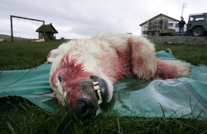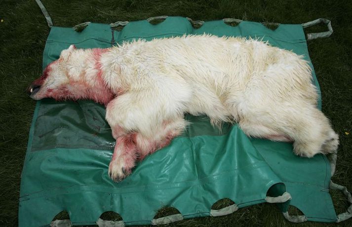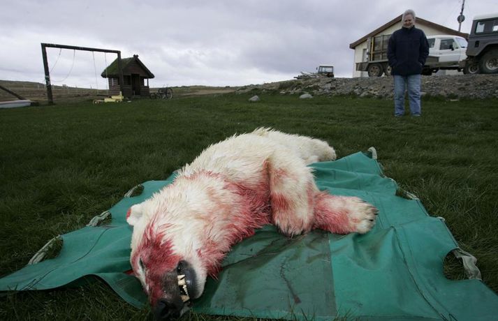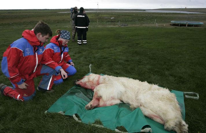 Tengdar fréttir Hyggst þiggja boð Novator Starfandi umhverfisráðherra, Björgvin G. Sigurðsson, segir að boð Novator þess efnis að félagið greiði kostnaðinn vegna björgun hvítabjarnarins í Skagafirði verði þegið. 16. júní 2008 22:17 Íbúar Hrauns á Skaga hugsanlega fluttir brott Lögreglan á Sauðárkróki íhugar nú að flytja íbúa bæjarins Hrauns á Skaga á brott á meðan deyfilyfi verður skotið í ísbjörninn með kvöldinu. Þetta kemur fram á fréttavefnum Skagafjörður.com. 17. júní 2008 14:59 Dýrafangarar koma líklega ekki fyrr en á miðvikudag - mynd af dýrinu Samkvæmt upplýsingum frá Hjalta Guðmundssyni, sviðsstjóra hjá Umhverfisstofnun, verður reynt að bjarga hvítabirninum sem nú hefst við í Skagafirði. 16. júní 2008 17:00 Skyttur komnar á vettvang á Hrauni Skyttur eru mættar að Hrauni á Skaga í Skagafirði þar sem ísbjörn hefur hreiðrað um sig í æðarvarpinu. Eftir því sem heimamenn segja eru þar á ferðinni sömu menn og felldu ísbjörninn á Þverárfjalli milli Blönduóss og Sauðárkróki. 16. júní 2008 16:16 Ísbjörninn í miðju æðarvarpinu Ísbjörninn sem gekk á land á Skagatá í Skagafirði er rólegur að sögn sjónarvotta og situr eins og er í æðarvarpinu við Hraun. 16. júní 2008 14:45 Novator býðst til að kosta björgun bjarnarins Að höfðu samráði við yfirvöld hefur Novator, félag Björgólfs Thors Björgólfssonar, boðist til að standa straum af kostnaði sem kann að hljótast af því að bjarga ísbirninum sem gekk á land í Skagafirði og koma honum í öruggt og varanlegt umhverfi. 16. júní 2008 18:39 Beðið eftir að búrið komi til Skagafjarðar Búr, sem nota á til að flytja ísbjörninn úr landi, er nú á leið til Skagafjarðar en það kom til landsins með Dananum Carsten Grøndahl sem er sérfræðingur í að meðhöndla villt dýr. 17. júní 2008 16:12 Björninn bíður hinna dönsku Meðfylgjandi mynd náðist fyrir skömmu af ísbirninum í Skagafirði. Lögregla fylgist grannt með dýrinu á meðan komu danskra sérfræðinga er beðið. 17. júní 2008 11:10 Verið að athuga hvort raunhæft er að svæfa ísbjörninn ,,Nú eru aðstæður allt aðrar og allir í öruggu skjóli," segir Þorsteinn Sæmundsson, forsöðumaður Náttúrustofu Norðurlands vestra, þegar Vísir náði tali af honum rétt í þessu og spurði um næstu skref varðandi ísbjörninn á Skagatá. 16. júní 2008 15:13 Hyggjast kæra yfirflug í morgun „Við ætlum að kæra þá,“ segir Stefán Vagn Stefánsson, yfirlögregluþjónn á Sauðárkróki, um áhöfn flugvélar sem flaug lágflug yfir svæðinu þar sem ísbjörninn heldur sig skammt frá bænum Hrauni. 17. júní 2008 14:31 Annar ísbjörn á Skaga - hélt að ísbjörninn væri áburðarpoki Annar ísbjörn hefur gengið á land, í þetta sinn við Hraun á Skagatá. Lögregla hefur lokað svæðinu en ekki er vitað hvað hún mun til bragðs taka. 16. júní 2008 13:54 Danskur sérfræðingur kemur í dag til að fanga ísbjörninn Dönsku sérfræðingarnir sem fanga eiga ísbjörninn sem sást í gær við bæinn Hraun á Skaga í Skagafirði eru væntanlegir til landsins um hálfþrjú í dag. Flogið er með þá og búrið sem þeir ætla að nota til að fanga björninn beint frá Kaupmannahöfn til Akureyrar. 17. júní 2008 09:32 Varð skíthrædd þegar hún sá björninn Karen Helga Steinsdóttir, sem gekk fram á ísbjörninn við Hraun á Skaga, segist hafa orðið skíthrædd þegar hún áttaði sig á hvað var á ferðinni. 16. júní 2008 18:30 Fara þarf gaumgæfilega yfir stöðuna segir ráðherra Þórunn Sveinbjarnardóttir umhverfisráðherra þakkaði öllum viðbragðsaðilum sem komu að aðgerðinni er sneri að ísbirninum í dag og í gær. 17. júní 2008 19:06 Ábúendur færa sig ekki um set Ábúendur að Hrauni II, þar sem hvítabjörn hefst við, ætla ekki að rýma húsið í nótt þrátt fyrir vinsamleg tilmæli frá lögreglunni. 16. júní 2008 21:10 Flókið að fanga ísbjörninn Sigurður Jónsson sérfræðingur hjá Umhverfisstofnun segir að stofnunin sé að afla sér upplýsinga um ísbjörninn sem gekk á land á Skagatá. Umhverfsstofnun vinnur með yfirvöldum fyrir norðan að málinu. 16. júní 2008 14:53 Sonur Danans í pössun á Hrauni meðan skotið er Sonur danska villidýrafræðingsins Carstens Grøndahl er kominn í pössun hjá dönsku húsfreyjunni á Hrauni á meðan karl faðir hans svæfir ísbjörninn. Þetta sagði Guðný Jóhannesdóttir, ritstjóri Héraðsfréttablaðsins Feykis, í samtali við Vísi. 17. júní 2008 17:25 Björninn unninn Búið er að drepa ísbjörninn í Skagafirði. Guðný Jóhannesdóttir, ritstjóri Héraðsfréttablaðsins Feykis, staðfesti það rétt í þessu í samtali við Vísi en hún var sjónarvottur að atburðinum. Aldrei náðist að koma deyfilyfinu í björninn svo að hann var skotinn er hann tók á rás í átt að fjölmiðlafólki. 17. júní 2008 18:16 Alþjóðleg dýraverndunarsamtök fagna björgunaraðgerðum Alþjóðlegu dýraverndunarsamtökin IFAW (International Fund for Animal Welfare) hafa sent frá sér fréttatilkynningu þar sem aðgerðum íslenskra stjórnvalda til að bjarga hvítabirninum í Skagafirði er fagnað. 16. júní 2008 19:30 Mest lesið Þorleifur Kamban er látinn Innlent Hellti bjór yfir slasaðan hjólreiðamann sem lá í götunni Innlent Stríð Trumps við fjölmiðla teygir sig yfir Atlantshafið Erlent Moskító mætt á Suðurland Innlent Veðmálafyrirtækin geti eflt íþróttafélög til muna Innlent Lætur ráðherra fjúka vegna umfangsmikils spillingarmáls Erlent Árelía kveður borgarpólitíkina Innlent Tillaga Sjálfstæðismanna um gjaldfrjáls stæði á messutíma felld Innlent Loftgæði verði áfram slæm Innlent „Meiddist og varð mjög hræddur um líf sitt“ Innlent Fleiri fréttir ÍSÍ ætli að sko