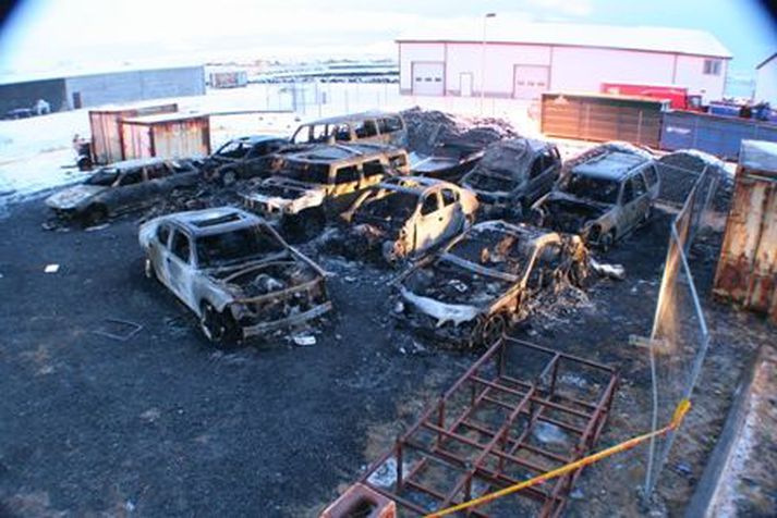 Sat uppi í sófa þegar kveikt var í jeppanum 27. apríl 2008 15:43 Um miðnætti í gærkvöldi var kveikt í glænýjum ellefu milljóna króna Volkswagen Toureg jeppa við Naustabryggju í Grafarvogi. Benjamín Þór Þorgrímsson eigandi bílsins segist hafa verið uppi í sófa þegar hann heyrði lætin. Bíllinn var keyrður 30 þúsund kílómetra. „Ég sat bara uppi í sófa þegar ég heyrði lætin," segir Benjamín sem er tiltölulega nýbúinn að fá bílinn. Hann segir þetta hafa verið ellefu milljóna króna jeppa sem keyrður var 30 þúsund kílómetra. Bíllinn er gjörónýtur. „Ég sá einhvern brúsa uppi á húddi á bílnum og svo var bara kveikt í," segir Benjamín sem þykir afar leitt hvernig fór fyrir bílnum. Þessir bílar brunnu í Vogunum í desember á síðasta ári. Vísir hefur áður skrifað fréttir um bíla sem brunnu í Vogum á Vatnsleysuströnd í desember á síðasta ári. Þeir bílar voru allir í eigu Ragnars Magnússonar fyrrum skemmtistaðaeiganda. Ragnar rak meðal annars Kaffi Óliver og fleiri staði. Í mars kærði Ragnar síðan sjö menn sem hann sagði hafa fengið sig til að láta af hendi skemmtistaði sem hann átti um skeið í miðborg Reykjavíkur með hótunum um ofbeldi og líkamsmeiðingar. Benjamín Þór er einn þessara manna. Aðspurður hvort hann gruni einhvern um að hafa kveikt í bílnum segir Benjamín aðeins einn aðila koma til greina. Með fréttinni er myndskeið af brunanum í gærkvöldi sem Jón Stefán Björnsson tók. Tengdar fréttir Ragnar Magnússon átti alla bílana sem brunnu Ragnar Magnússon, eigandi Kaffi Ólívers og fleiri skemmtistaða í Reykjavík átti alla bílana sem brunni í Vogum í nótt. Hann segist hafa orðið fyrir að minnsta kosti 70 milljóna króna tjóni en tveir bílanna voru safngripir. Hann segir einnig rangt að Annþór Karlsson hafi verið með bílana í sinni vörslu en bílarnir hafi verið á leiðinni í þrif hjá félaga Ragnars sem er með aðstöðu í Hafnargötu. 9. desember 2007 18:20 Mest lesið Segir um að ræða alvarlega aðför að sjálfstæði forseta Íslands Innlent Fífldjarft að fara í formanninn en varaformannsembættið...? Innlent Hýdd 140 sinnum fyrir áfengisneyslu og kynlíf utan hjónabands Erlent Ríkisstjórnin rugli og olíufélögin ekki sökudólgurinn Innlent Játaði brot sín og sleppur ekki aftur við fangelsisvist Innlent Afar sérstakt að lækka laun og það á verkalýðsdaginn sjálfan Innlent Trump vill hafa Pútín og Xi út af fyrir sig Erlent Njósnastjóri Trumps leitar að kosningasvindli Erlent „Muni ekki valda neinu öðru en umferðaröngþveiti“ Innlent Rannsókn vegna Deildu.net hætt tíu árum frá kæru Innlent Fleiri fréttir Rannsókn vegna Deildu.net hætt tíu árum frá kæru Ríkisstjórnin rugli og olíufélögin ekki sökudólgurinn Betri að innleiða tilskipanir en verri að innleiða reglugerðir Segir um að ræða alvarlega aðför að sjálfstæði forseta Íslands Hitni undir olíufélögum sem þurfi að passa sig Stórleikurinn riðlar dagskrá margra Afar sérstakt að lækka laun og það á verkalýðsdaginn sjálfan Kristrún ræðir verðbólguna og allt á suðupunkti fyrir leikinn í kvöld Aldrei verið gefnar út fleiri rauðar viðvaranir Finnist hvergi eins sterk skilyrði til umhverfisverndar í lagareldi Streymi: Heilsan okkar: Meðferð offitu hjá fullorðnum Burðardýr hlaut þungan dóm fyrir vökvasmygl Fífldjarft að fara í formanninn en varaformannsembættið...? Játaði brot sín og sleppur ekki aftur við fangelsisvist Ráðhús Árborgar sprungið – 10 starfsmenn fluttir í annað húsnæði Streymi: Málþing um stöðu fatlaðra barna í íþróttum Lögregla eltist við afbrotamenn Harma launalækkanir í fiskeldi á Vestfjörðum Myndbirtingar foreldra geti skapað hættu Óvissustigi lýst yfir vegna snjóflóðahættu „Muni ekki valda neinu öðru en umferðaröngþveiti“ „Mér þykir leiðinlegt að þetta gangi ekki betur“ Hafði aldrei heyrt um handbolta fyrr en hún kynntist handboltaóðu þjóðinni Auglýsa forskráningu í skóla í Grindavík Segir ekkert náttúrulögmál að bílasalar þurfi að velta hækkunum út í verðlagið Þrjár hlutu heiðursverðlaun Fimm handteknir grunaðir um skipulagðan þjófnað Ráðherra situr fyrir svörum, gleðitíðindi og konan sem hafði aldrei heyrt um handbolta Seinka sýningum fyrir leikinn Óbirt svör og starfslokin tekin fyrir Sjá meira
