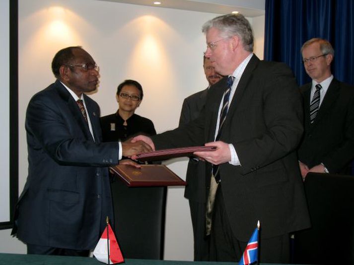 Einar K. Guðfinnsson sjávarútvegs- og landbúnaðarráðherra og Freddy Numberi, sjávarútvegsráðherra Indónesí,u skrifuðu í morgun undir viljayfirlýsingu milli þjóðanna um samstarf á sviði sjávarútvegs. Numberi er staddur hér á landi og mun í dag heimsækja íslensk fyrirtæki og stofnanir til þess að fá meðal annars innsýn í íslenskan sjávarútveg. Fram kemur á vef sjávarútvegs- og landbúnaðarráðuneytisins að Numberi hafi flutt erindi um indónesískan sjávarútveg á opnum fundi á Grand Hóteli í morgun. Þar voru möguleikar erlendra aðila til að fjárfesta í greininni í Indónesíu kynntir.