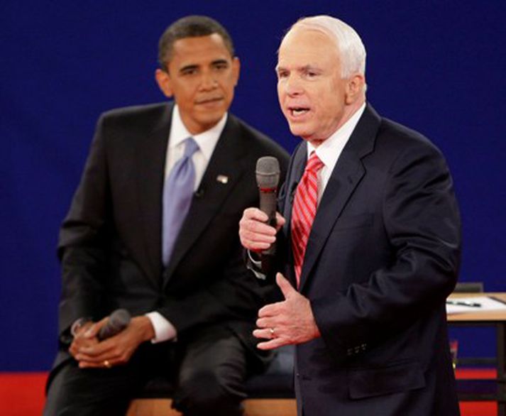 Dýrustu forsetakosningar sögunnar hófust í Bandaríkjunum fyrir klukkustund. Barack Obama er sigurstranglegri en John McCain samkvæmt skoðanakönnunum. Samkvæmt skoðanakönnunum verður Barack Obama fyrsti svarti forseti Bandaríkjanna. Og það gæti orðið með stórum sigri. Í Gallup-könnun hefur hann hvorki meira né minna en ellefu prósenta forskot. Samkvæmt könnun NBC-fréttastofunnar og Wall Street Journal er forskotið átta prósent og samkvæmt Reuters sjö prósent. Búist er við mikilli kjörsókn. Ein vísbendingin um það er að yfir tuttugu milljónir manna hafa þegar greitt atkvæði utan kjörfundar. Það er metfjöldi. Kosningabaráttan hefur verið löng og grimm. Og ekki bara á milli þeirra Baracks Obama og Johns McCain. Þau Barack Obama og Hillary Clinton börðust mánuðum saman um hvort þeirra yrði frambjóðandi Demokrataflokksins. Stöð 2 sýnir frá kosningasjónvarpi CNN Á þeim tíma hafði McCain næstum frítt spil og stóð vel í skoðanakönnunum. Obama byrjaði hins vegar að sækja í sig veðrið um leið og demókratar gerðu upp hug sinn. Og hann hefur haldið forskoti sínu æ síðan. Í dag er svo komið að þjóðinni að kveða upp sinn úrskurð. Þess má geta að klukkan tíu mínútur fyrir tólf í kvöld mun Stöð 2 tengjast beint við CNN fréttastofuna og áhorfendur stöðvarinnar geta því fylgst beint með bandarískum kosningasjónvarpi. Sú útsending verður í opinni dagskrá.