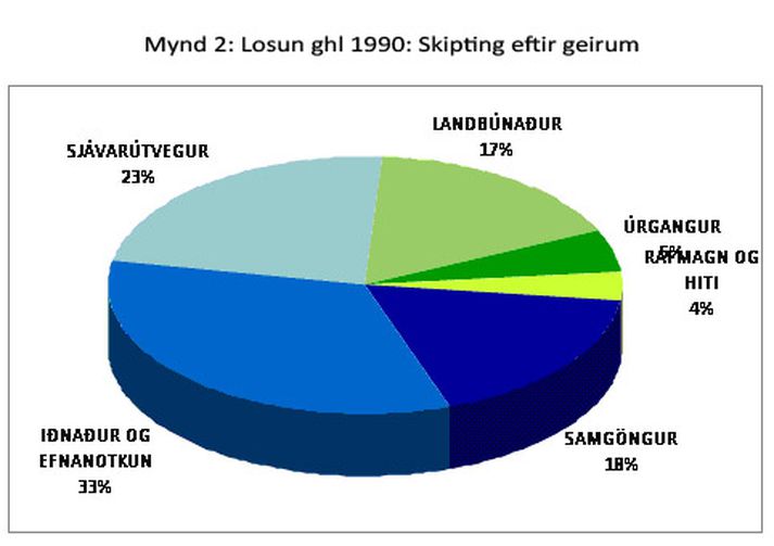 Heildarlosun gróðurhúsalofttegunda jókst úr rúmum 3,7 milljónum tonna árið 2005 í rúm 4,2 milljónir árið 2006. Aukningin nemur 525 þúsund tonnum eða 14 prósentum. Þetta kemur fram í nýjum tölum sem Umhverfisstofnun hefur tekið saman fyrir skrifstofu Loftslagssamnings Sameinuðu þjóðanna í Bonn. Segir í tilkynningu frá umhverfisráðuneytinu að aukningin sé mun meiri en spár hafi gert ráð fyrir. Þórunn Sveinbjarnardóttir umhverfisráðherra hefur óskað eftir nýrri spá frá Umhverfisstofnun og mati á því hvort líkur séu á að Ísland fari fram úr skuldbindingum sínum samkvæmt Kýótó-bókuninni. Stærstur hluti aukningar frá áliðnaði Fram kemur í tilkynningunni að stærsta hluta aukningarinnar megi rekja til aukinnar losunar frá áliðnaði, sem jókst um 404 þúsund tonn milli 2005 og 2006, eða um 89 prósent. Aukningin er öll frá álveri Norðuráls á Grundartanga og tengist stækkun álversins þar.Losun gróðurhúsalofttegunda frá samgöngum jókst um 146 þúsund tonn milli áranna 2005 og 2006, eða um 17 prósent, að langmestu leyti vegna vegasamgangna. Umhverfisráðherra óskar eftir því að Umhverfisstofnun skoði losun frá samgöngum og beri saman losun á mann á Íslandi og í öðrum ríkjum sem bera skuldbindingar í loftslagsmálum.Losun frá sjávarútvegi dróst hins vegar saman um 113 þúsund tonn á milli áranna 2005 og 2006, eða um rúm 15 prósent. Samdráttur var í losun bæði frá fiskiskipaflotanum og fiskimjölsverksmiðjum. Losun frá landbúnaði jókst um 33 þúsund tonn, eða um tæp 7 prósent.Á árunum 1990 til 2006 jókst losun gróðurhúsalofttegunda um nærri fjórðung. Á skuldbindingartímabili Kýótó-bókunarinnar, 2008-2012, má losunin á Íslandi ekki aukast meira en 10 prósent miðað við losun árið 1990. Að auki hefur Ísland sérstaka heimild til aukningar á losun koldíoxíðs frá stóriðju, íslenska ákvæðið.Ráðherra fundar með álfyrirtækjum„Auk þess að óska eftir nýrri losunarspá frá Umhverfisstofnun, mun ráðherra boða fulltrúa álfyrirtækjanna til fundar til þess að ræða skuldbindingar Íslands í loftslagsmálum. Árangur hefur náðst á undanförnum árum í minnkun á losun PFC og hefur losunin hérlendis síðustu ár verið með því lægsta sem þekkist á tonn af framleiddu áli. Yfirleitt er nokkur aukning á losun í upphafi starfstíma álvera eða þegar nýjar framleiðslueiningar eru teknar í notkun. Á fundinum með álfyrirtækjunum verður farið yfir þessa losun, hvort hætta sé á því að hún verði meiri en spáð hafði verið og til hvaða ráðstafana sé hægt að grípa ef í það stefnir," segir í tilkynningunni.