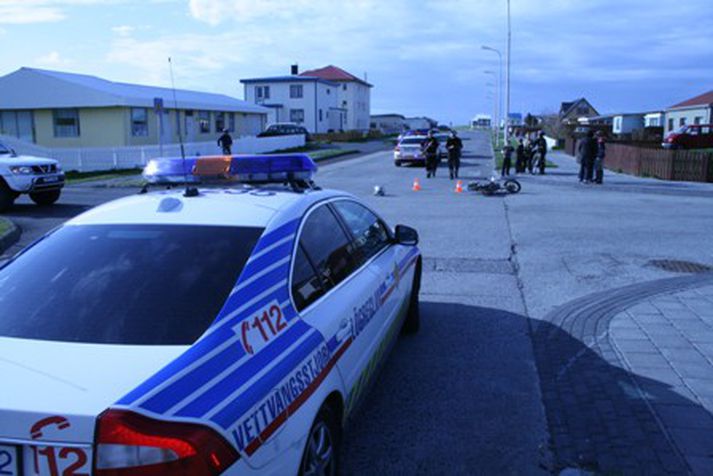 Slys á Njarðvíkurbraut 19. maí 2008 19:33 Ljósmynd: Víkurfréttir / Hilmar Bragi Umferðarslys varð á Njarðvíkurbraut í Innri Njarðvík á sjötta tímanum í kvöld. Fólksbíll og smávélhjól lentu þar í árekstri en ökumaður hjólsins er 14 ára gamall. Að sögn lögreglu sinnti drengurinn sem var á litlu torfæruhjóli ekki stöðvunarskyldu. Pilturinn rotaðist í árekstrinum og var fluttur með sjúkrabifreið til læknisskoðunar. Talið er að hann hafi viðbeinsbrotnað. Mest lesið Hljóp inn í brennandi byggingu til að bjarga nágrannanum Innlent Sveitarstjóra ekki heimilt að banna hundahald Innlent Ellefu meðlimir glæpafjölskyldu teknir af lífi í Kína Erlent Spyr hvort ekki sé tími á að Palestínumenn snúi aftur í friðinn heima Innlent Vísar ásökunum um óeðlileg afskipti í kosningabaráttu á bug Innlent Hátt í sjötíu ár síðan það snjóaði eins lítið Innlent Segir Venesúela munu þurfa að sækja um úthlutun úr eigin olíusjóði í Katar Erlent Hvort myndu þau hringja fyrst til baka í Pétur eða Hildi? Innlent 28 prósent Selfyssingar: „Eitthvað í mjólkinni eða smjörinu“ Innlent Fundu fjarlægustu vetrarbrautina hingað til Erlent Fleiri fréttir Vísar ásökunum um óeðlileg afskipti í kosningabaráttu á bug Sveitarstjóra ekki heimilt að banna hundahald Rannsaka innbrot á veitingastað og þjófnað í skartgripaverslun Hljóp inn í brennandi byggingu til að bjarga nágrannanum Hátt í sjötíu ár síðan það snjóaði eins lítið Spyr hvort ekki sé tími á að Palestínumenn snúi aftur í friðinn heima Hvort myndu þau hringja fyrst til baka í Pétur eða Hildi? 28 prósent Selfyssingar: „Eitthvað í mjólkinni eða smjörinu“ Erlendir aðilar reyni að hafa vit fyrir Íslendingum Óttast að útlendingafrumvarpið þjóni ekki tilgangi sínum Sigurvíma, hópuppsögn og auðar brekkur Boðuð í þingsal á versta tíma: „Brynjar, þú ert nú meiri gaurinn!“ Elísabet tekur tímabundið við embætti landlæknis Ákærður fyrir að taka son sinn hálstaki Metaðsókn í starfsendurhæfingu Óvissa um framboð bæði Írisar og listans Konan enn þungt haldin Leiðir samningaviðræðurnar við bændur Helgi Bjartur einnig ákærður fyrir vændiskaup Hættu að fá boð á vísindaráðsfundi almannavarna: „Menning þöggunar og útilokunar“ „Tel nægja að menn séu að fremja ítrekuð afbrot“ Ólga meðal eldfjallafræðinga og bruni á Húsavík Fjármál barnanna geti haft áhrif á eftirlaun foreldranna Áfengi efnafræðilega skylt lampaolíu, terpentínu og bensíni Karlarnir leiða að ósk kvennanna Þessi skipa lista Samfylkingarinnar í Reykjanesbæ Nær altjón í iðnaðarhúsnæði eftir bruna á Húsavík Guðrún svarar fyrir gömul ummæli um aðildarviðræður að ESB Afneitun helfararinnar verði gerð refsiverð og fræðsla aukin Rúmlega tvöhundruð skjálftar við Lambafell í Þrengslum Sjá meira
