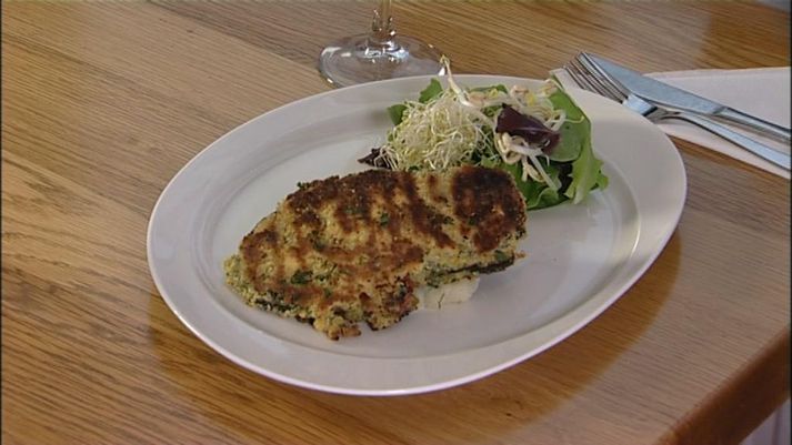 1 stk eggaldin skorið eftir endilöngu í passlegar stærðir og steikkt á þurri pönnu í smá stund Spelt raspur eða venjulegur brauðraspur settur í form fyrir panneringu 2 stk egg slegin og sett í form fyrir panneringu 2 stk tómatar skornir í sneiðar Aðferð Eggaldinið er smurt með pestóinu. Síðan er tómötum raðað á og annarri eggaldinsneið er bætt ofan á. Þetta er gert við alla skammtana. Síðan er þessu dýft í egginn og svo pannerað upp úr raspinu. Þetta er gert einu sinni enn og ætti þá að vera kominn góður hjúpur utan um Þetta er síðan steikt á pönnu með olíu á passlegum hita og steikt báðum megin. Þetta er síðan bakkað upp á diska með seljurótarmaukinu og goðu salati.Pestó1stk basilbúntLúka af spínati1stk hvítlauksrif100gr kassíuhnetur1dl ólífu olía100gr rifinn ostur1matsk dijon sinnepSalt og piparAðferð Allt sett í blender nema sinnepið og osturinn. Þegar þetta er orðið grænt og fallegt þá er sinnepinu og ostinum blandað saman og þetta smakkað til.Seljurótarmauk½ seljurót meðalstór skorin í grófa teninga2stk kartöflur meðalstórar skornar í sneiðar1stk lítill lalukur skorinn í sneiðar½ rauður chili fræhreinsaður og skorinn í þunnar sneiðarLúka spínati4stk hvítlauks rifÓlífu olíaSalt og piparAðferð Allt sett í pott nema spínatið og svitað aðeins með olíunni og kryddað til. Síðan er sirka 1,5 dl vatni sett í (má einnig vera rjómi ef vill lúxus útgáfan) og lok er sett á. Látið sjóða í rólega í sirka 20 mínútur. Þá er þetta tekið af hitanum og athugað hvort allt sé ekki orðið passlega mjúkt og gott. Ef það er of mikið vatn í pottinum þá er gott að hella aðeins af því í skál ef ske kynni að þið vilduð bæta meiru í. Síðan er þetta stappað með grófum písk þar til ykkur finnst þetta vera mátulegt (má einnig taka þetta í blender og gera þetta að mjúku mauki. Síðast er spínatinu bætt í og það er velt saman með sleif til að hafa það gróft. Þetta er síðan sett til hliðar með loki á.