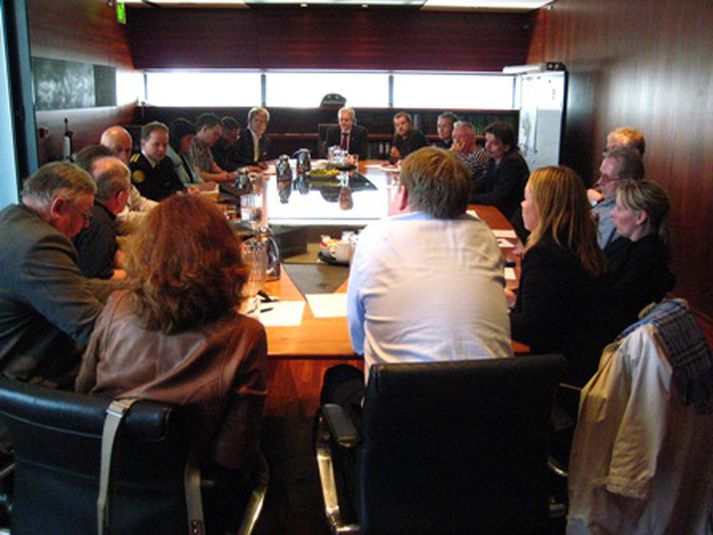 Þeir félagar Ólafur F. Magnússon borgarstjóri og Jakob Frímann Magnússon framkvæmdastjóri miðborgarmála stóðu fyrir samráðsfundi með „lykilaðilum miðborgar" í dag. Fundurinn var haldinn í Ráðhúsinu og hann sátu hátt í 30 manns. Meðal fundarmanna var Stefán Eiríksson, lögreglustjóri auk hagsmunaaðila í miðborginni og embættismanna frá Reykjavíkurborg. „Meðal umræðuefnis á fundinum var skipulagt samstarf lykilaðila í miðborginni í sumar með það fyrir augum að auka öryggi og friðsæld um helgar í miðbænum." segir í tilkynningu frá borgarstjóra. „Þá var rætt um eflingu eftirlits og löggæslu og skipaður samstarfshópur um eftirfylgni í kjölfar hverrar helgar fram til septemberloka." Í samstarfshópnum sitja meðal annarra: Kormákur Geirharðsson fulltrúi rekstraraðila, Geir Jón Þórisson fyrir hönd lögreglunnar, Kári Halldór fyrir hönd íbúasamtaka miðborgar Jakob Frímann Magnússon fyrir hönd Reykjavíkurborgar. Í tilkynningunni segir að góður rómur hafi verið gerður að fundinum og sagði Jakob Frímann Magnússon, framkvæmdastjóri miðborgarmála að menn hefðu „sammælst um að taka höndum saman og ráða bót á því sem betur mætti fara í miðborg Reykjavíkur. Mikilvægt væri að fullt tillit yrði tekið til sjónarmiða íbúa, rekstraraðila og þeirra sem bera ábyrgð á löggæslu og eftirliti."