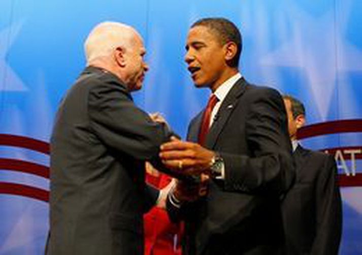 Öldungadeildarþingmaðurinn Barack Obama var í gær kjörinn 44. forseti Bandaríkjanna. Það var laust eftir klukkan fjögur í nótt að íslenskum tíma sem John McCain viðurkenndi ósigur sinn en Obama var þá kominn með 323 kjörmenn á bak við sig og nýbúinn að tryggja sér sigurinn í Kaliforníu og Flórída. Til sigurs þarf forsetaefni 270 kjörmenn. George Bush forseti hringdi í Obama og óskaði honum til hamingju með sigurinn þegar ljóst var orðið hvert stefndi. Sagði Bush arftaka sínum að hann væri um það bil að hefja stórfenglegustu ferð lífs síns og bauð honum til heimsóknar í Hvíta húsið svo fljótt sem verða mætti. Þegar upp var staðið vann Obama 338 kjörmenn en McCain 157. Um 51 prósent greiddra atkvæða féll Obama í skaut en McCain hlaut 48 prósent. Kjörsókn var góð á bandarískan mælikvarða og er talið að 130 milljónir manna hafi neytt atkvæðisréttar síns. Obama sver embættiseið í janúar og bíða hans þá hörð átök við efnahagsmálin. Langur vegur og brattur Hann sagði langan veg og brattan liggja fram undan. Óvíst væri að takmarkið næðist á einu ári eða einu kjörtímabili en hann þættist þess þó fullviss að það næðist og Bandaríkjamenn sem þjóð myndu að lokum ná því sem að væri stefnt. Talið er að um 125.000 manns hafi verið saman komin í Grant Park í Chicago til að hlusta á sigurræðu Obama. Hann sagðist hlakka til samstarfsins við fyrrum mótherja sína, McCain og hina kanadísku Söru Palin en McCain hvatti alla Bandaríkjamenn til að fylkja sér um hinn nýja forseta þjóðarinnar. Mikil fagnaðarlæti voru við Hvíta húsið í Washington og ekki síður á götum Chicago, heimaborgar Obama. Auk kröftugra umbóta í efnahagsmálum hefur Obama lofað skattalækkunum og stórbættu heilbrigðiskerfi auk þess sem hann hyggst kalla bandaríska hermenn heim frá Írak. Með sigri Obama í nótt lauk lengsta framboðsslag forsetaefna í sögu Bandaríkjanna en kosningabaráttan stóð í alls 21 mánuð.