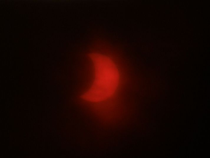 Í morgun var svokallaður deildarmyrkvi fyrir sólu sjáanlegur á Íslandi en þá gengur tunglið að hluta til fyrir sólu frá okkur séð. Á sama tíma var almyrkvi á sólu sýnilegur í norðuhluta Kanada, Grænlandi, Síberíu, Mongólíu og Kína. Á meðfylgjandi mynd sést deildarmyrkvinn glögglega en myndina sendi hinn ellefur ára gamli Arnar Már Halldórsson.