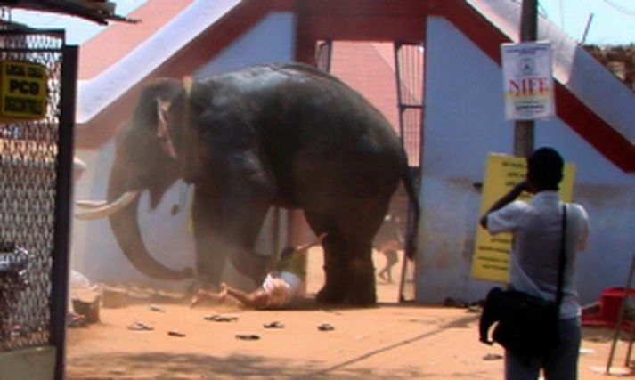 Fíll gekk berserksgang - Þrír létust 23. apríl 2008 22:35 Þrír Indverjar létu lífið í gær þegar fíll gekk berserksgang í musteri í bænum Trhissur á Suður Indlandi. Fjöldi fólks var í musterinu enda hátíðísdagur Hindúa. Fílinn átti að nota í trúarlegri athöfn. Tveir musterisgesta urðu undir fílnum og létust þegar hann trylltist skyndilega en sá þriðji sem lét lífið var einn af eigendum fílsins. Hann varð fyrir fílnum þegar hann reyndi að koma í veg fyrir að fleiri yrðu á vegi hans. Lögreglan veit ekki hvað olli því að fílinn trylltist svona skyndilega en hann róaðist sömmu síðar. Fílar eru oft notaðir í túarlegar hátíðir sem þessar á Suður-Indlandi. Þeir eru þá skreyttir og málaðir. Mest lesið Sigmundur Davíð helsti áhrifavaldur á afstöðu Össurar í ESB-málinu Innlent Ragnheiður Erla Bjarnadóttir er látin Innlent „Fólkið er að öskra: Donald Trump, komdu núna“ Innlent Bjóða Frosta að ræða „villuljós“ í Háskóla Íslands Innlent Haaland keypti Heimskringlu á 17 milljónir Erlent Biðlar til Løkke að mynda með sér miðhægristjórn Erlent Appelsínugular viðvaranir og yfir 45 metrar á sekúndu á Kjalarnesi Veður Opinn fundur í utanríkismálanefnd um ESB atkvæðagreiðslu Innlent Köldu lofti beint til landsins og djúp lægð nálgast Veður Glæsibrú á Vestfjörðum boðin út í næsta mánuði Innlent Fleiri fréttir Vill halda áfram sem forsætisráðherra Íranir segja engar viðræður í gangi þvert á yfirlýsingar Trumps Biðlar til Løkke að mynda með sér miðhægristjórn Tæplega þúsund drónar á einum sólarhring Haaland keypti Heimskringlu á 17 milljónir „Markmiðið er ekki að komast til tunglsins, heldur búa þar“ Útgönguspá: Ríkisstjórninni refsað en Løkke í lykilstöðu Sendir líka fallhlífarhermenn til Mið-Austurlanda Listamaður reyndi að kaupa atkvæði Gengst nú við að gaspra í Rússa Trump „svindlaði“ í kosningum í Flórída Ísraelar hyggjast hernema suðurhluta Líbanon Á rúntinum með andefni Danir ganga að kjörborðinu í afar spennandi kosningum Gervigreindarmyndskeiðum af barnaníði fjölgar gífurlega Meloni beið „bitran“ ósigur í þjóðaratkvæðagreiðslu Viðræður eða ekki viðræður, þarna er efinn Notuðu myndavélar klerkastjórnarinnar til að fella Khamenei Sakar Orbán og félaga um landráð Íranir segja engar viðræður við Trump-liða eiga sér stað Deila á Bandaríkjaforseta fyrir að dansa á gröf rannsakanda Líklegt að Rasmussen verði í oddastöðu eftir kosningar Eigandi OnlyFans látinn Gerir hlé á árásum á Íran Lionel Jospin er látinn Kveikt í sjúkrabílum Gyðinga í London Ungverjar út í kuldann vegna leka til Rússa LaGuardia lokað vegna áreksturs við slökkviliðsbíl Sósíalistinn Grégoire nýr borgarstjóri Parísar Trump og Starmer ræddu Hormuz-sund Sjá meira
