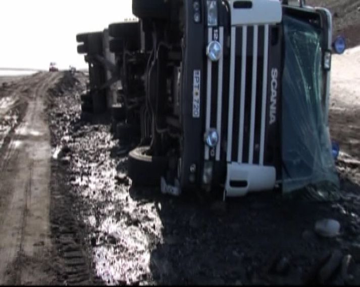 Lækurinn sem varð að fljóti 14. maí 2008 15:38 Kristján Steinarsson, vöruflutningabílstjóri hjá Flytjanda komst í hann krappan í gær þegar hringveginum skolaði bókstaflega burt á 200 metra kafla. Kristján var á leið frá Reyðarfirði til Akureyrar og var staddur nálægt bænum Grímsstöðum á fjöllum í svarta þoku þegar hann tók eftir því að lækur hafði myndast meðfram veginum. „Ég var nýbúinn að tala við annan bílstjóra og segja honum að það mætti ekki rigna mikið því þá væri vegurinn í hættu," segir Kristján í samtali við Vísi. Hann segir að sem betur fer hafi þokunni létt lítið eitt og þá hafi hann séð traktorsgröfu við vegarkantinn sem var að reyna að losa klakahröngl frá ræsi við veginn. „Þá sá ég að það var farið að flæða upp á veginn og ég ákvað að stoppa. Það var eins gott því þegar ég reyndi að bakka þá skildi tengivagninn eftir gat í veginum sem ég komst ekki yfir." Kristján segist þá hafa farið út úr bílnum og séð að svelgur hafi myndast aftan við bílinn. Maðurinn á traktorsgröfunni reyndi að mynda undankomuleið fyrir bílinn, sem er flutningabíll með tengivagni, en í þann mund gaf vegurinn sig og bíllinn sökk niður á stuðara. Eins og sjá skolaði veginum burt á löngum kafla.„Þá fór ég út úr honum aftur og gat lítið gert annað en að horfa á hann velta á hliðina. Stuttu seinna fór vegurinn í sundur fyrir framan bílinn og síðan fyrir aftan og eftir stutta stund var heljarinnar fljót komið þar sem vegurinn hafði verið," segir Kristján sem er frá Akureyri. Hann segir óljóst um ástand bílsins en gerir ekki ráð fyrir að hann verði ökufær á næstunni. Mest lesið Hljóp inn í brennandi byggingu til að bjarga nágrannanum Innlent „Hættulegasti maður Noregs“ fannst látinn í fangaklefa Erlent Svona mun Suðurlandsbraut líta út Innlent Sveitarstjóra ekki heimilt að banna hundahald Innlent Hótaði málþófi vegna veiða sem tengdasonurinn stundar Innlent „Við eigum ekki að vera hrædd við að taka umræðuna“ Innlent Afi fór ekki yfir strikið með meintri rassskellingu Innlent Ellefu meðlimir glæpafjölskyldu teknir af lífi í Kína Erlent Leigubílar verði á lituðum númeraplötum Innlent Launin lækkuð um 97 prósent en ekki afnumin Innlent Fleiri fréttir Óbirt svör og starfslokin tekin fyrir Tæplega þrjátíu prósent Tesla Y þurftu í endurskoðun Mikil andstaða við nýtt 160 herbergja hótel á Laugarvatni Á fjórða hundrað vilja á lista Sjálfstæðisflokks í Reykjavík Hótaði málþófi vegna veiða sem tengdasonurinn stundar Svona mun Suðurlandsbraut líta út Kannast ekki við tilraunir til að stofna nýtt Vélfag Ljósið flytur í Grafarvog Launin lækkuð um 97 prósent en ekki afnumin „Við eigum ekki að vera hrædd við að taka umræðuna“ Pallborðið: Aðstoðarmenn, bæjarstjóri og viðskiptafræðingur Viðreisnarfélögum fjölgað um helming fyrir prófkjör Afi fór ekki yfir strikið með meintri rassskellingu Guðjón endurkjörinn og Simon líka Mannabreytingar samráðsfunda eins og tiltekt á jólakortalista Óttast vaxtahækkanir vegna sleggjunnar sem stjórnvöld „fengu í trýnið“ Verðbólgan eykst en loðnan gleður Bein útsending: Opinn fundur um áfallaþol Íslands Sakar mótframbjóðanda um trúnaðarbrest og kallar eftir prófkjöri Leigubílar verði á lituðum númeraplötum Alltaf til í slaginn en vonar að samningar haldi Vísar ásökunum um óeðlileg afskipti í kosningabaráttu á bug Sveitarstjóra ekki heimilt að banna hundahald Rannsaka innbrot á veitingastað og þjófnað í skartgripaverslun Hljóp inn í brennandi byggingu til að bjarga nágrannanum Hátt í sjötíu ár síðan það snjóaði eins lítið Spyr hvort ekki sé tími á að Palestínumenn snúi aftur í friðinn heima Hvort myndu þau hringja fyrst til baka í Pétur eða Hildi? 28 prósent Selfyssingar: „Eitthvað í mjólkinni eða smjörinu“ Erlendir aðilar reyni að hafa vit fyrir Íslendingum Sjá meira