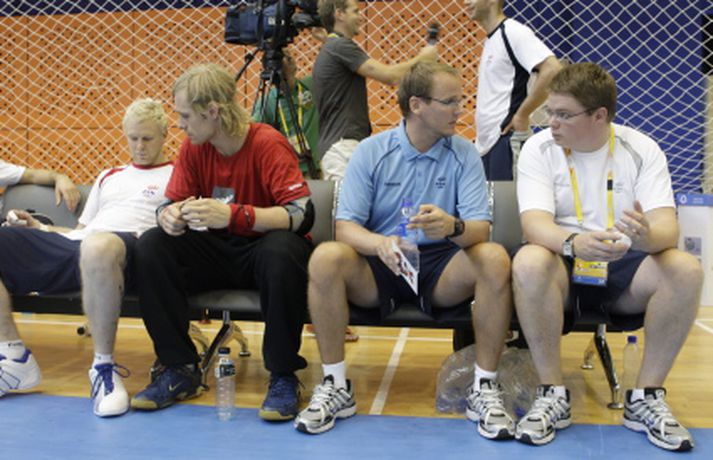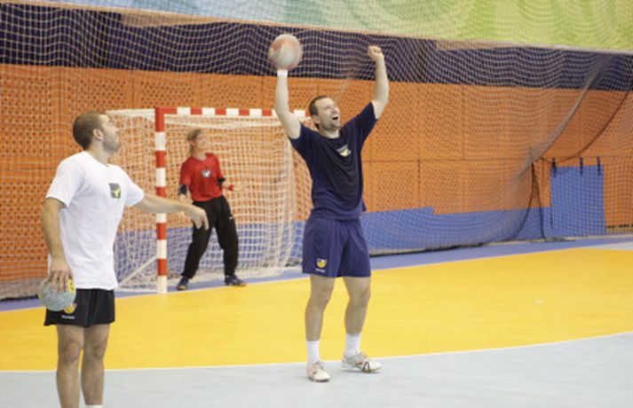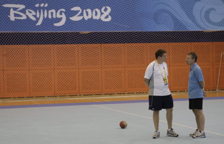 Íslenska landsliðið tók lokaæfingu sína fyrir úrslitaleikinn gegn Frökkum í fyrramálið í morgun. Vilhelm Gunnarsson ljósmyndari var á staðnum og tók myndir sem sýna að stemningin er góð í herbúðum íslenska liðsins.Alexander Petersson sést hér teygja á lokaæfingu íslenska landsliðsins fyrir úrslitaleikinn gegn Frökkum í fyrramálið.Vilhelm GunnarssonSnorri Steinn Guðjónsson sýnir hér knattspyrnuhæfileika sína.Vilhelm GunnarssonGuðmundur Guðmundsson og Gunnar Magnússon ræða sér saman á lokaæfingunni í morgun.Vilhelm GunnarssonSverre Jakobsson og Sturla Ásgeirsson bregða hér á leik.Vilhelm GunnarssonVarnartröllið Sverre Jakobsson er klár í slaginn.Vilhelm GunnarssonSnorri Steinn Guðjónsson stillir sér hér upp með kínverskum aðdáanda.Vilhelm GunnarssonAðstoðarþjálfararnir Óskar Bjarni Óskarsson og Gunnar Magnússon fara hér yfir málin á lokaæfingunni.Vilhelm Gunnarsson