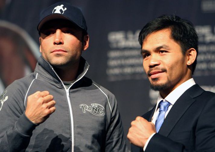 Gamla kempan Oscar de la Hoya segist hafa æft svo vel fyrir bardagann gegn Manny Pacquiao annað kvöld að hann sé tilbúinn að berjast við King Kong. Bardaginn í Las Vegas verður nokkuð sérstakur fyrir þær sakir að De la Hoya er hér að berjast niður fyrir sig í þyngd á meðan Pacquiao er að þyngja sig. Bardaginn annað kvöld er í veltivigt, en De la Hoya hefur ekki barist í þeirri þyng síðan árið 2000. Filipseyingurinn Pacquiao hefur lengst af keppt í fluguvigt og aldrei hærra en í léttvigt. "Ef ég ætlaði að hugsa að þessi maður væri ekki höggþungur og silalegur - mundi ég tapa. Ég er búinn að undirbúa mig undir bardaga við King Kong," sagði De la Hoya. De la Hoya er 35 ára gamall og á að baki 39 sigra (30 rothögg) í 44 bardögum. Hann hefur hinsvegar tapað þremur af síðustu sex, en sú töp hafa reyndar ekki komið gegn neinum viðvaningum - þeim Floyd Mayweather, Shane Mosley og Bernard Hopkins. Pacquiao er 29 ára og hefur unnið 47 sigra í 52 bardögum, 35 þeirra með rothöggi, en hefur tapað þrisvar. "Ég kemst á spjöld hnefaleikasögunnar ef ég vinn þennan bardaga. 'Eg trúi að ég hafi kraft og hraða til að sigra hann Ég ber virðingu fyrir Oscar, hann er frábær boxari - en ég óttast hann ekki," sagði Pacquio. Bardaginn verður sýndur beint á Stöð 2 Sport aðra nótt.