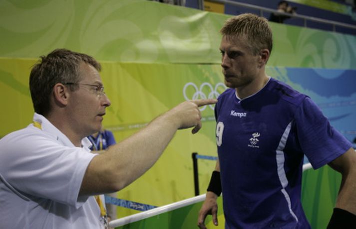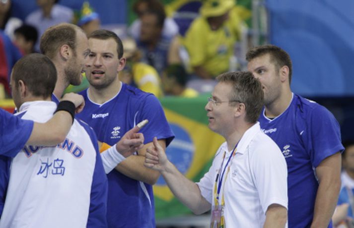 Ólafur: Við getum unnið alla Henry Birgir Gunnarsson í Peking skrifar 18. ágúst 2008 04:00 Ólafur ræðir málin við Guðmund landsliðsþjálfara. Mynd/Vilhelm „Ég ætla ekki að hugsa um eitthvað sem hefði átt að vera. Þetta var bara akkúrat eins og það átti að vera. Nú þurfum við strax að byrja á að fókusa á það sem kemur eftir tvo daga en það er stórleikur," sagði Ólafur Stefánsson landsliðsfyrirliði. „Menn verða að halda sér í réttri spennu fram að því. Andstæðingurinn sem við fáum er bara uppáhaldsandstæðingurinn. Við getum unnið þá alla og vinnum þá alla. Líkamlega standið er frábært og við þurfum að vita hvað hinn er að hugsa. Stilla okkur saman. Það þarf allt að vera í samræmi og þá erum við ógeðslega góðir. Það vantar ekkert upp á kraft og snerpu. Þetta lið er það reynslumikið að menn eiga að höndla pressuna," sagði Ólafur en hvernig fannst honum að spila handbolta klukkan 9 um morguninn? „Það er bara gaman og ágætt að vera búinn snemma. Næsti leikur verður á aðeins eðlilegri tíma."Íslenski landsliðshópurinn þjappar sér saman fyrir síðustu sókn leiksins sem tryggði Íslandi sigurinn. Vilhelm GunnarssonGuðmundur Guðmundsson landsliðsþjálfari segir sínum mönnum til. Vilhelm GunnarssonHér vill hann fá brottvísun á egypskan leikmann. Vilhelm GunnarssonBjörgvin Páll Gústavsson kom einu sinni við sögu í leiknum er hann freistaði að verja víti frá Zaky. Það tókst honum ekki, frekar en Hreiðari. Vilhelm GunnarssonHreiðar sér hér eftir af boltanum í íslenska markið. Vilhelm GunnarssonSigfús er kátur í bragði í leikslok og ræðir hér við Guðmund. Vilhelm GunnarssonHér ræða hann og Guðjón Valur málin. Vilhelm GunnarssonRóbert Gunnarsson sýndi ótrúlega takta á línunni og skoraði sex mörk úr jafn mörgum skotum. Fiskaði þar að auki eitt víti. Vilhelm GunnarssonÓlafur Stefánsson skoraði aðeins tvö mörk í leiknum. Tók aðeins þrjú skot í það heila. Vilhelm GunnarssonGuðjón Valur átti frábæran leik og skoraði tíu mörk. Vilhelm GunnarssonÁsgeir Örn náði sér ekki á strik og skoraði eitt mark. Vilhelm GunnarssonRóbert í kunnulegri stöðu á línunni. Vilhelm GunnarssonLogi kom sterkur inn í upphafi síðari hálfleiks og skoraði þrjú í röð. Vilhelm GunnarssonSigfús Sigurðsson brá sér í sóknina og skoraði eitt gott mark. Vilhelm GunnarssonÓlafur og Guðmundur ræða málin. Vilhelm Gunnarsson Körfubolti Tengdar fréttir Logi: Skrítinn leikur „Maður verður að hafa þetta spennandi. Það var kannski jákvætt að ná jafntefli úr því sem komið var,“ sagði Logi Geirsson eftir jafnteflið gegn Egyptum í nótt. 18. ágúst 2008 03:54 Ísland á enn möguleika á efsta sætinu Ísland getur enn náð efsta sætinu í B-riðli handboltakeppni karla á Ólympíuleikunum í Peking ef úrslit í öðrum leikjum verða liðinu hagstæð. Ísland á þó engan möguleika á að lenda í fjórða sæti riðilsins. 18. ágúst 2008 03:04 Hreiðar Levý: Ég er enginn hani „Ég er nú enginn hani og það vita allir sem þekkja mig. Ég er ekki þessi morgunmaður,“ sagði markvörðurinn Hreiðar Guðmundsson léttur eftir Egyptaleikinn en leikurinn fór fram klukkan 9 um morgun að staðartíma og stemningin sérstök. 18. ágúst 2008 03:58 Jafntefli gegn Egyptum Ísland má þakka fyrir að hafa náð einu stigi gegn Egyptum í lokaleik sínum í B-riðli handboltakeppni karla á Ólympíuleikunum í Peking. 17. ágúst 2008 23:45 Mest lesið Sjáðu lætin í lokin: „Þetta var algjörlega til skammar“ Enski boltinn Alfreð hafði betur gegn Degi í troðfullu húsi Handbolti Rúnar Ingi: „Kæfðu okkar stemningu og völtuðu yfir okkur“ Sport „Gabi vildi ekki gera honum neitt slæmt“ Enski boltinn Mikael krækti í víti og var grátlega nærri sigri á Milan Fótbolti Steinar: Virðingarleysi sem smitast Körfubolti Arsenal með sex stiga forskot eftir blautan slag Enski boltinn Uppgjörið: ÍA - Grindavík 91-94 | Toppliðið heldur áfram eftir háspennu Körfubolti „Erum búnir að sjá þetta milljón sinnum“ Körfubolti „Þessi frammistaða breytir ekki getunni í liðinu“ Körfubolti Fleiri fréttir Alfreð hafði betur gegn Degi í troðfullu húsi Íslenski læknirinn hjá sænska landsliðinu bjartsýnn á að Palicka verði með Hafnaði Val og fer heim til Eyja Markvörður Svía á sjúkrahús eftir að hafa verið skotinn niður „Fáum fullt af svörum um helgina“ Elín Klara hetjan í fyrsta leik á nýju ári Heimsmeistararnir þurftu að fara í átta tíma rútuferð Þorir ekki að lofa undanúrslitum: „Þetta er ekki svo auðvelt“ Ótrúleg óheppni Slóvena Hefur átt mikilvæg samtöl við Snorra Stein Óðinn bætti við titli um jólin og mætir glaður á EM Ýmir ekki sár yfir vali Loga og Kára: „Veit hvar ég stend í þessu liði“ Strákarnir eigi að stefna á verðlaun Erfitt að fara fram úr rúminu Fá vondar fréttir fyrir EM: „Mikið áfall fyrir Norðmenn“ Ágúst vann tvöfalt á hófi Íþróttamanns ársins Skoðar stöðuna eftir helgi og hefur ekki áhyggjur af Bjarka Donni dregur sig úr landsliðshópnum Gísli giftur, Ómar í rannsóknarvinnu og Snorri fagnar ástinni Opin æfing hjá strákunum okkar Giftu sig á gamlársdag „Feginn að þú lifðir krabbameinið af svo þú gætir séð skítaliðið þitt fara niður“ Einar Bragi og félagar áfram á toppnum Fara inn í nýja árið á toppnum Segir Ísland eiga tvo af tíu bestu í heimi Hetjuleg barátta dugði ekki gegn heimsmeisturunum Arnór stoðsendingahæstur þegar Karlskrona hoppaði upp í áttunda Elín Klara endaði árið með hundrað prósent skotleik Strákarnir komnir í úrslit á Sparkassen Óðinn bikarmeistari fjórða árið í röð Sjá meira