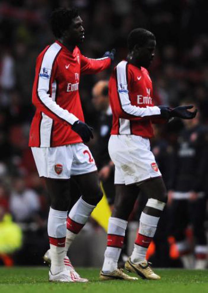Adabeyor: Eboue verður sterkari Elvar Geir Magnússon skrifar 8. desember 2008 20:11 Adebayor og Eboue. Emmanuel Adebayor stendur við bakið á sínum besta vini hjá Arsenal, Emmanuel Eboue. Hann segist sannfærður um að Eboue muni jafna sig fljótt á atburðum helgarinnar. Eboue kom inn sem varamaður í fyrri hálfleik gegn Wigan en fann sig ekki og bauluðu stuðningsmenn Arsenal á hann fyrir slaka frammistöðu. Á endanum var Eboue tekinn aftur af velli í lokin. „Við stöndum allir saman og ég vorkenni Emmanuel Eboue. Hann er einn af mínum bestu vinum. Stuðningsmenn bauluðu á hann en svona gerist bara í fótboltanum," sagði Adebayor í viðtali á heimasíðu Arsenal. „Þetta mun bara styrkja hann. Við finnum til með honum því hann hefur verið að glíma við meiðsli og það er erfitt fyrir hann að koma svona til baka," sagði Adebayor en Arsenal vann Wigan 1-0 og er enn með í baráttunni um Englandsmeistaratitilinn. Arsene Wenger, stjóri Arsenal, hefur einnig sýnt Eboue stuðning og ætlar að hafa hann í byrjunarliðinu í leiknum gegn Porto í Meistaradeildinni á miðvikudag. Enski boltinn Mest lesið Féll úr skíðalyftu og lést Fótbolti Býst ekki við að spila aftur fyrir landsliðið Íslenski boltinn Kynntu Sigurð á slaginu sex á aðfangadag Íslenski boltinn Var frústreraður vegna landsliðsins Fótbolti Van de Ven bað Isak afsökunar: „Vildi ekki meiða hann“ Enski boltinn Síðasti dansinn hjá Kelce? Sport Hvers vegna heillast stórliðin svo af Semenyo? Enski boltinn Dreymir enn um Evrópu: „Ekki tilbúin að borga það sama“ Sport Ruglaðar lokamínútur í Afríkukeppninni Fótbolti Stefndi á ÓL en fannst látinn á hótelherbergi Sport Fleiri fréttir Kærður af knattspyrnusambandinu Bestu jólamörkin: Drogba, Scholes eða Giroud? Van de Ven bað Isak afsökunar: „Vildi ekki meiða hann“ Hvers vegna heillast stórliðin svo af Semenyo? Stewart, Snoop og Modric í eina sæng Vill ekki segja hversu lengi Bruno er frá Spyr hvort Guardiola stígi á vigtina Arsenal í undanúrslit eftir vító Man. Utd reyndi stíft en Semenyo kaus City „Tölfræðilega séð eiga þeir ekkert að vera í þessari stöðu“ Chelsea setur sig í samband við Semenyo Jiménez jafnaði bestu vítaskyttu sögunnar Slot mun sakna Isak í tvo mánuði eftir „glórulausa tæklingu“ Sjáðu „auma“ vítið sem skilaði Fulham sigri Fulham skildi Forest eftir við fallsvæðið Áfallið staðreynd og Isak búinn í aðgerð Fagnaði titli Liverpool sem óður maður um alla borg „Allir virðast elska hann“ „Þetta mun ekki buga okkur“ Guardiola mun vigta leikmenn Man City eftir jólin „Ef þið væruð Antoine Semenyo, hvert mynduð þið fara?“ Sjáðu mörkin: Rogers sá um Manchester United Óttast að Isak hafi fótbrotnað Tvenna frá Rogers tryggði Villa sigur gegn Manchester United Fimmta sinn sem Arsenal er á toppnum um jólin: Unnu ekki titilinn í fyrstu fjögur skiptin „Viljum við að okkar verði minnst fyrir að vera skræfur?“ „Ef dómarinn hefði sinnt sínu starfi almennilega hefði Romero ekki fengið spjald“ Haaland gaf barnabarni Hareide gjöf Sjáðu mörkin úr enska: Sviptingar, sænskt þema og svakalegar tæklingar Calvert-Lewin hættir ekki að skora Sjá meira