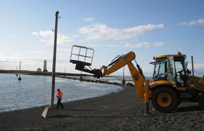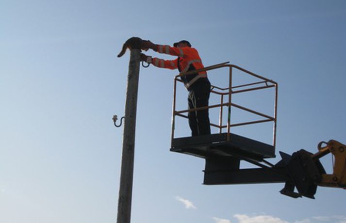 Björguðu kisa úr sjálfheldu Jón Hákon Halldórsson skrifar 11. ágúst 2009 10:30 Bæjarstarfsmenn notuðu gröfu til að ná kisa niður. Mynd/ Íris Gústafsdóttir. Kisi litli lenti í sjálfheldu þegar að hann var að leika sér í rafmagnsstaur á Seltjarnarnesi í gær. Staurinn er nokkuð hár og þegar kisi var kominn upp á topp þorði hann ekki niður. Seltirningar sem áttu leið um kenndu í brjósti um kisa og ákváðu að kalla á aðstoð lögreglunnar. Sökum anna komst lögreglan ekki á staðinn. Það kom ekki að sök því að bæjarstarfsmenn hjá Seltjarnarnesbæ sýndu af sér mikið snarræði og björguðu kisa. Íris Gústafsdóttir, sem býr á Seltjarnarnesi, tók myndir af björgunaraðgerðunum og sendi Vísi myndirnar. Mest lesið Skipuðu húsráðanda að elda fyrir sig áður en ræningjarnir ruddust inn Innlent Föðurnum enn haldið sofandi í öndunarvél Innlent Frímúrarareglan vill lögbann á nýjar lögreglureglur Erlent Halldór Blöndal borinn til grafar Innlent Trump hótar skelfilegum afleiðingum afvopnist Hamas ekki Erlent Kolbrúnu Bergþórs sagt upp á Mogganum Innlent Stoltastur af veiðigjaldinu og telur aðrar skattabreytingar hafa lítil áhrif á heimilin Innlent Fannst látinn utandyra í Borgarnesi Innlent Erlendir ferðamenn talsvert slasaðir eftir áreksturinn Innlent Sagt upp eftir 26 ár á Morgunblaðinu Innlent Fleiri fréttir Stoltastur af veiðigjaldinu og telur aðrar skattabreytingar hafa lítil áhrif á heimilin Föðurnum enn haldið sofandi í öndunarvél Fylgi stjórnarflokkanna dalar Föðurnum í Suður-Afríku enn haldið sofandi Skipuðu húsráðanda að elda fyrir sig áður en ræningjarnir ruddust inn Fannst látinn utandyra í Borgarnesi Halldór Blöndal borinn til grafar Fimm með vanlíðan komast í Skjólshús í tvær vikur Kolbrúnu Bergþórs sagt upp á Mogganum Sagt upp eftir 26 ár á Morgunblaðinu Kominn tími á gos og Veðurstofan öllu viðbúin Sýknuð af ólöglegum innflutningi lyfja vegna rangra upplýsinga Lyfjastofnunar Þriggja hatta Inga segir engin ráðherraskipti í pípunum Desember að komast á lista yfir þá allra hlýjustu Erlendir ferðamenn talsvert slasaðir eftir áreksturinn Samið um Skjólshús og gos gæti komið á hverri stundu Hér verða áramótabrennur á gamlársdag 2025 Björn Ingi leiðir ekki Miðflokksmenn í borginni Gestir á Edition stukku út á náttfötunum Þurrkuðust út af þingi en sitja á tugum milljóna króna Óvenju mikið að gera hjá slökkviliðinu Sósíalistar líta til harðstjórnarríkja sem fyrirmynda Þrír réðust á einn og höfðu af honum farsíma Tvær þyrlur sækja fjóra eftir alvarlegan árekstur á Fagurhólsmýri „Rúllandi rafmagnsleysi“ alla daga og tífaldur þungi í árásum „Gamla góða Ísland, bara betra“ Gróður farinn að grænka fyrir norðan Ferðakostnaður forsetans rúmar tuttugu milljónir Sakamálin sem einkenndu árið sem er á enda Ekki boðlegt að þingið hunsi þjóðaratkvæðagreiðslu Sjá meira