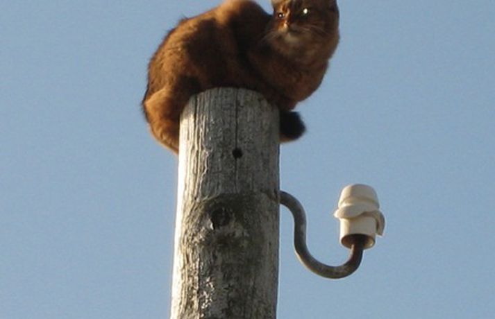 Kisi litli lenti í sjálfheldu þegar að hann var að leika sér í rafmagnsstaur á Seltjarnarnesi í gær. Staurinn er nokkuð hár og þegar kisi var kominn upp á topp þorði hann ekki niður. Seltirningar sem áttu leið um kenndu í brjósti um kisa og ákváðu að kalla á aðstoð lögreglunnar. Sökum anna komst lögreglan ekki á staðinn. Það kom ekki að sök því að bæjarstarfsmenn hjá Seltjarnarnesbæ sýndu af sér mikið snarræði og björguðu kisa. Íris Gústafsdóttir, sem býr á Seltjarnarnesi, tók myndir af björgunaraðgerðunum og sendi Vísi myndirnar.