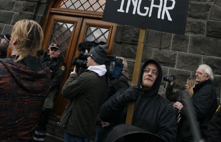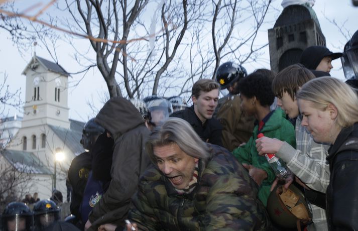 Þúsundir manna söfnuðust saman á Austurvelli þegar Alþingi kom saman eftir hlé í gær. Fólk var hvatt til þess að mæta og láta í sér heyra. Rétt eftir hádegi fór fólk að safnast saman og mótmælin eru einhver þau kröftugust og háværustu hingað til. Vísir var á staðnum. Fólk úr flestum stéttum þjóðfélagsins gerðu hróp að þingheimi sem sat fastur inn í þinghúsinu fram eftir degi. Krafan var skýr: „Vanhæf ríkisstjórn" Nokkrum sinnum sauð uppúr og þurfti lögregla að beita piparúða og kylfum til þess að hafa hemil á fólkinu. Skyri var slett á lögregluna og hvellhettur voru sprengdar. Andrúmsloftið var rafmagnað. Lögreglan var gagnrýnd fyrir harkaleg viðbrögð en svaraði á móti að þeir væru einungis að verja þinghúsið. Fimmtán klukkutímum síðar fóru síðustu mótmælendurnir heim til sín. Þá var búið að fella Oslóartréið við Austurvöll og brenna á báli. Ljósmyndararnir Vilhelm Gunnarsson, Anton Brink Hansen og Gunnar V. Andrésson voru á staðnum og tóku meðfylgjandi myndir. Einnig er hægt að horfa á myndband frá gærkvöldinu sem Daníel Friðriksson tók. VILHELM GUNNARSSONVILHELM GUNNARSSONVILHELM GUNNARSSONVILHELM GUNNARSSONVILHELM GUNNARSSONVILHELM GUNNARSSONVILHELM GUNNARSSONVILHELM GUNNARSSONVILHELM GUNNARSSONVILHELM GUNNARSSONVILHELM GUNNARSSONVILHELM GUNNARSSONVILHELM GUNNARSSONVILHELM GUNNARSSONVILHELM GUNNARSSONVILHELM GUNNARSSONVILHELM GUNNARSSONVILHELM GUNNARSSONVILHELM GUNNARSSONVILHELM GUNNARSSONVILHELM GUNNARSSONVILHELM GUNNARSSONVILHELM GUNNARSSONVILHELM GUNNARSSONVILHELM GUNNARSSONVILHELM GUNNARSSONVILHELM GUNNARSSONVILHELM GUNNARSSONVILHELM GUNNARSSONVILHELM GUNNARSSONVILHELM GUNNARSSONVILHELM GUNNARSSONVILHELM GUNNARSSONVILHELM GUNNARSSONVILHELM GUNNARSSONVILHELM GUNNARSSONVILHELM GUNNARSSONVILHELM GUNNARSSONVILHELM GUNNARSSONVILHELM GUNNARSSONVILHELM GUNNARSSONVILHELM GUNNARSSONVILHELM GUNNARSSONVILHELM GUNNARSSON