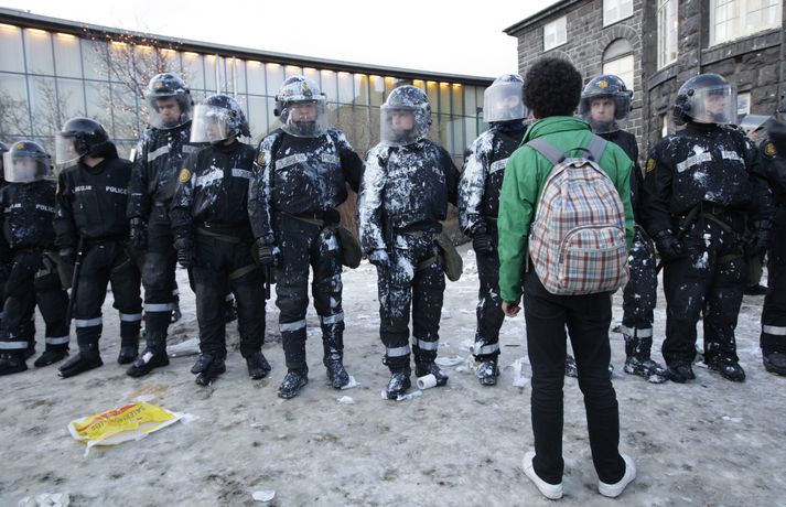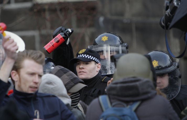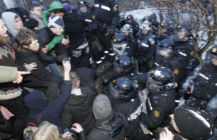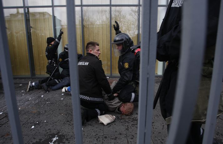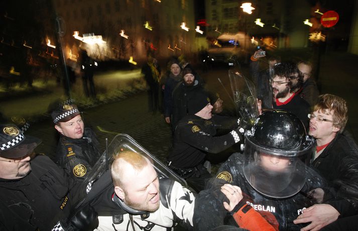 Mótmælin í myndum 21. janúar 2009 10:52 Þúsundir manna söfnuðust saman á Austurvelli þegar Alþingi kom saman eftir hlé í gær. Fólk var hvatt til þess að mæta og láta í sér heyra. Rétt eftir hádegi fór fólk að safnast saman og mótmælin eru einhver þau kröftugust og háværustu hingað til. Vísir var á staðnum. Fólk úr flestum stéttum þjóðfélagsins gerðu hróp að þingheimi sem sat fastur inn í þinghúsinu fram eftir degi. Krafan var skýr: „Vanhæf ríkisstjórn" Nokkrum sinnum sauð uppúr og þurfti lögregla að beita piparúða og kylfum til þess að hafa hemil á fólkinu. Skyri var slett á lögregluna og hvellhettur voru sprengdar. Andrúmsloftið var rafmagnað. Lögreglan var gagnrýnd fyrir harkaleg viðbrögð en svaraði á móti að þeir væru einungis að verja þinghúsið. Fimmtán klukkutímum síðar fóru síðustu mótmælendurnir heim til sín. Þá var búið að fella Oslóartréið við Austurvöll og brenna á báli. Ljósmyndararnir Vilhelm Gunnarsson, Anton Brink Hansen og Gunnar V. Andrésson voru á staðnum og tóku meðfylgjandi myndir. Einnig er hægt að horfa á myndband frá gærkvöldinu sem Daníel Friðriksson tók. VILHELM GUNNARSSONVILHELM GUNNARSSONVILHELM GUNNARSSONVILHELM GUNNARSSONVILHELM GUNNARSSONVILHELM GUNNARSSONVILHELM GUNNARSSONVILHELM GUNNARSSONVILHELM GUNNARSSONVILHELM GUNNARSSONVILHELM GUNNARSSONVILHELM GUNNARSSONVILHELM GUNNARSSONVILHELM GUNNARSSONVILHELM GUNNARSSONVILHELM GUNNARSSONVILHELM GUNNARSSONVILHELM GUNNARSSONVILHELM GUNNARSSONVILHELM GUNNARSSONVILHELM GUNNARSSONVILHELM GUNNARSSONVILHELM GUNNARSSONVILHELM GUNNARSSONVILHELM GUNNARSSONVILHELM GUNNARSSONVILHELM GUNNARSSONVILHELM GUNNARSSONVILHELM GUNNARSSONVILHELM GUNNARSSONVILHELM GUNNARSSONVILHELM GUNNARSSONVILHELM GUNNARSSONVILHELM GUNNARSSONVILHELM GUNNARSSONVILHELM GUNNARSSONVILHELM GUNNARSSONVILHELM GUNNARSSONVILHELM GUNNARSSONVILHELM GUNNARSSONVILHELM GUNNARSSONVILHELM GUNNARSSONVILHELM GUNNARSSONVILHELM GUNNARSSON Mest lesið Íslenskur maður lést í Úkraínu Innlent Eldur við flugvöll á Grænlandi Erlent „Miður að bensínhákum sé umbunað“ Innlent Kostnaður vegna veikinda nemur milljörðum Innlent Sprenging eftir að gestir opnuðu út Erlent Selenskí skipar nýjan starfsmannastjóra í kjölfar spillingarmáls Erlent Banaslys á Hvolsvelli Innlent Sprengingar í höfuðborg Venesúela Erlent Allt sem þú þarft að vita um nýja kílómetragjaldið Innlent Réttindalaus og keyrði á kyrrstæðan lögreglubíl Innlent Fleiri fréttir „Miður að bensínhákum sé umbunað“ Íslenskur maður lést í Úkraínu Nýársbarnið á Suðurlandi býr á Eyrarbakka Réttindalaus og keyrði á kyrrstæðan lögreglubíl Kostnaður vegna veikinda nemur milljörðum Verðlækkanir á bensíni og áramótaheit landsmanna 2025 var hlýjasta árið á Íslandi frá upphafi mælinga Fjögur vilja tvö efstu hjá Viðreisn Kristín vill fyrsta sætið Allt sem þú þarft að vita um nýja kílómetragjaldið Þremur þjófum vísað úr landi Funda í janúar í kjaraviðræðum flugstétta Hlutfall fínasta svifryksins áberandi hátt á nýársnótt Telur nær öruggt að fleiri hundar muni týnast Dæmi um að fólk hafi flúið upp í sveit Þurfi að sannfæra flokkinn Sex tíma leikskóladvöl nú gjaldfrjáls í Hafnarfirði Neytendur eigi meira inni eftir eldsneytislækkanir á nýju ári Hafna beiðni manns sem braut kynferðislega á stjúpdóttur Banaslys á Hvolsvelli Sumarbústaðaeigendur geti skotið upp flugeldum annars staðar Karólína Helga býður sig fram gegn sitjandi oddvita Mikill meirihluti vill lögfesta rétt barna til leikskólavistar Veki furðu að bílaleigubílar séu ekki á nagladekkjum Eldur í bíl við Breiðhellu Vinum hans ekki litist á blikuna Pétur verið lengur en hún í stjórnmálum Fluttur á sjúkrahús eftir slys í Hrútafirði Pétur fer á móti borgarstjóra og vill fyrsta sætið í Reykjavík Kveður klettinn í lífi sínu eftir skyndileg veikindi Sjá meira