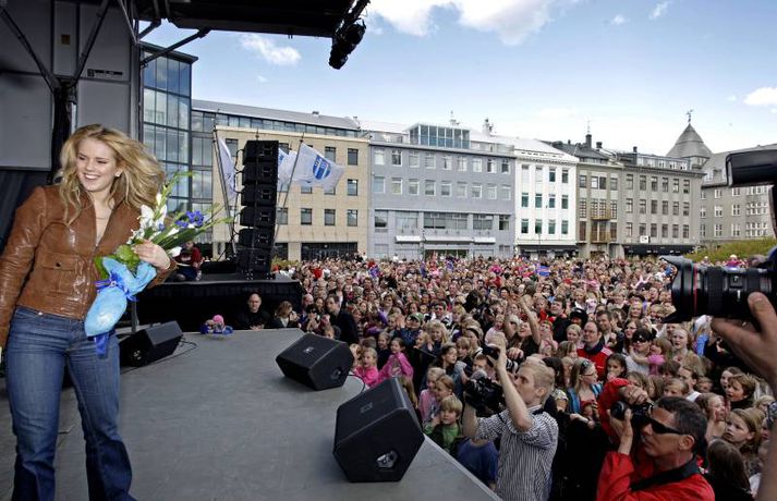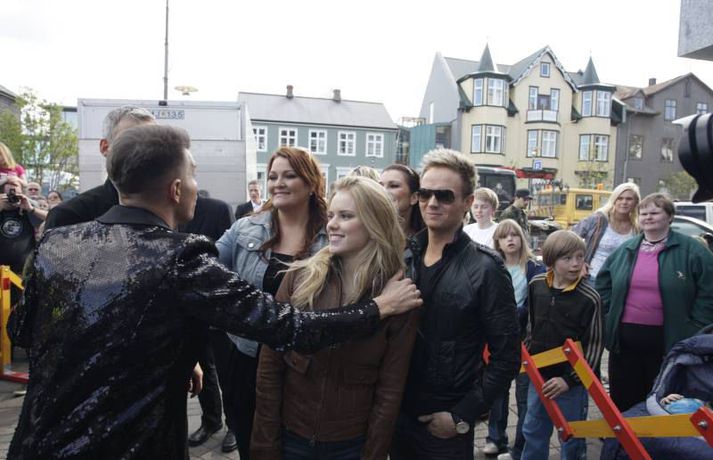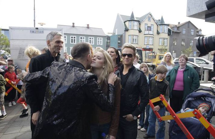 Á meðfylgjandi myndum, sem Valgarður Gíslason ljósmyndari tók, má sjá þegar fjöldi fólks hyllti Jóhönnu Guðrúnu Jónsdóttur sem söng lagið Is It True? með dyggum stuðningi Heru Bjarkar Þórhallsdóttur, Friðriks Ómars Hjörleifssonar og Ernu Hrannar Ólafsdóttur í bakröddum í Moskvu.
