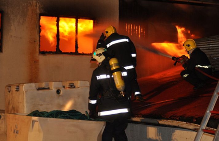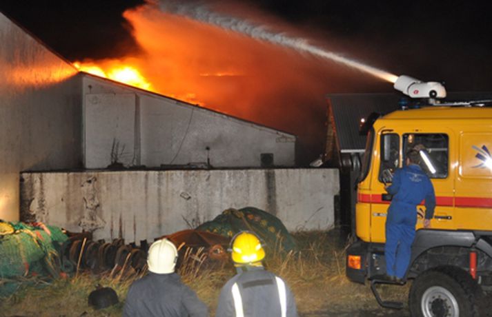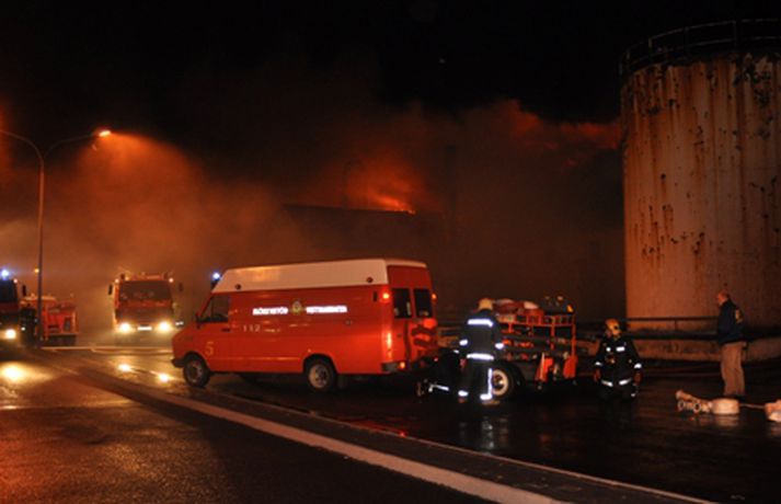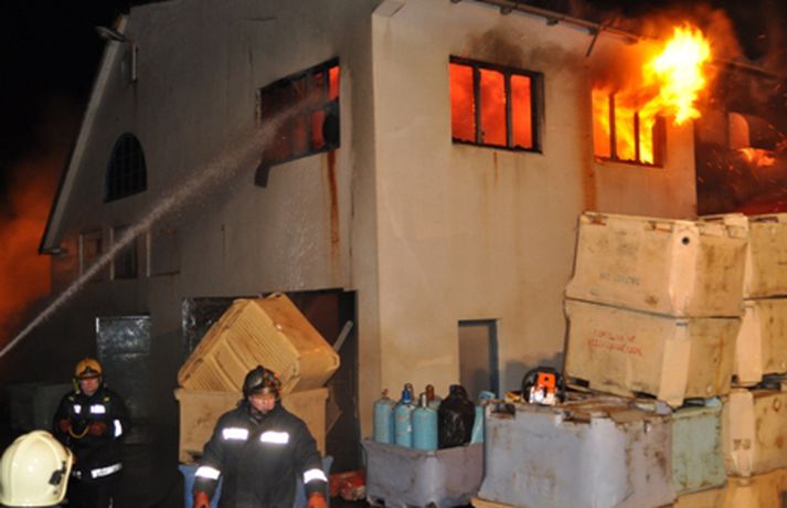 Stórbruni í Vestmannaeyjum 15. október 2009 06:40 Meðfylgjandi myndir tók Óskar Pétur Friðriksson. MYND/Óskar Pétur Friðriksson Lifrarsamlagið í Vestmannaeyjum varð alelda í nótt og berst allt tiltækt slökkvilið í eyjunum nú við brunann við erfiðar aðstæður. Eldurinn kom upp um klukkan fjögur og er þakið af elsta húsinu sem byggt var 1932 hrunið og eldur er í viðbyggingum að sögn lögreglu. Slökkvilið telur sig nú hafa náð tökum á eldinum. Um eina samfellda byggingu er að ræða en við hana hefur verið byggt mikið í gegnum árin sem gerir slökkvistarf erfitt aðen veðuraðstæður eru sæmilegar þrátt fyrir töluverðan vind. Slökkviliðið hefur einnig notið aðstoðar lögreglu og björgunarsveitar við slökkvistarfið og hafa um fimmtíu manns barist við eldinn frá því í nótt. Að sögn lögreglu er alls óvíst um eldsupptök á þessari stundu en engin starfsemi var í húsinu í nótt og því engin tæki í gangi. Á tímabili var óttast að eldurinn næði að læsa sig í annað hús sem stendur nærri en slökkviliðið telur sig hafa komið í veg fyrir það. Miklar lýsisbirgðir eru í Lifrarsamlaginu og eldsmatur því mikill. Óskar Pétur FriðrikssonÓskar Pétur FriðrikssonÓskar Pétur FriðrikssonÓskar Pétur FriðrikssonÓskar Pétur Friðriksson Mest lesið Fátækari eftir að hafa svindlað á ferðakonum Innlent Tveir lögreglumenn sprengdir í loft upp Erlent Hvar er opið á aðfangadag? Innlent Blússandi hagvöxtur í Bandaríkjunum Erlent Minni rekstrarkostnaður fyrir eigendur bensínháka Innlent Bæta við allt að 200 íbúðum og mathöll í Spöngina Innlent Foreldrar skipverjans fá áheyrn í Hæstarétti Innlent Maður í umferðarslysi reyndist fíkniefnasali Innlent Arion banki varar við svikaherferð Innlent Innflytjendamálin almenningi efst í huga Innlent Fleiri fréttir Gleðileg jól kæru lesendur Einn fluttur á sjúkrahús eftir bílslys Skiluðu hagnaði á kosningaári Hátíðarveisla á kaffistofu Samhjálpar: „Það er ró og friður yfir fólki“ Björgunarsveitin kölluð út í fokverkefni Grjóthrun undir Eyjafjöllum Fátækari eftir að hafa svindlað á ferðakonum Arion banki varar við svikaherferð Innanlandsflugi aflýst Foreldrar skipverjans fá áheyrn í Hæstarétti Hvar er opið á aðfangadag? Innflytjendamálin almenningi efst í huga Bæta við allt að 200 íbúðum og mathöll í Spöngina Maður í umferðarslysi reyndist fíkniefnasali Minni rekstrarkostnaður fyrir eigendur bensínháka Hafnar „jólakveðju“ ríkisins Hefði þurft hjólbörur undir öll verðlaunin sín Ýmis ráð til taugatrekktra á Þorláksmessu Ekkert því til fyrirstöðu að Ásthildur Lóa verði aftur ráðherra Óvissa um ráðherraskipan og skata fyrir byrjendur Maðurinn fundinn Sigríður Halldórsdóttir nýr ritstjóri Kastljóss Íslendingur í gæsluvarðhaldi í Kólumbíu vegna gruns um kynferðisbrot Forsætisráðuneytið eyddi meiru í almannatengla í fyrra en í ár Inkalla snuð vegna of mikils magns BPA-plastefna Svanhildur Sif heiðruð Falskar netverslanir: Auglýsir rýmingarsölu nokkrum dögum eftir opnun Meðallaun upplýsingafulltrúa hækkuðu hlutfallslega mest Skötuilmurinn leggst yfir landið og Samkeppniseftirlitið ætlar að fylgjast vel með bensínverðinu Áfram auknar líkur á eldgosi Sjá meira