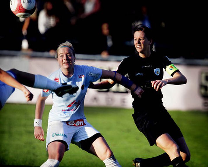 Sigur hjá Margréti Láru en tap hjá Dóru Henry Birgir Gunnarsson skrifar 26. maí 2009 19:04 Dóra Stefánsdóttir í leik með Malmö. Mynd/Scanpix Margrét Lára Viðarsdóttir og félagar í Linköping unnu auðveldan 5-0 sigur á AIK í kvöld. Linköpings í öðru sæti með 19 stig. Yfirburður Linköpings voru miklir í leiknum en liðið átti 31 skot í leiknum á móti aðeins 5 hjá AIK. Margrét Lára kom af bekknum á 64. mínútu og nældi sér í gult spjald. Umea skaust svo á toppinn þegar liðið lagði lið Dóru Stefánsdóttur, 1-2, en liðin voru jöfn að stigum fyrir leikinn. Dóra var sem fyrr í byrjunarliði Malmö en fór af velli á 66. mínútu. Malmö í þriðja sæti með 18 stig en Umea á toppnum með 20 stig. Fótbolti á Norðurlöndum Mest lesið Þessi tíu eru tilnefnd sem Íþróttamaður ársins 2025: 23 ára aldursmunur Sport Sagan ekki sönn: „Veit ekki hvaðan þetta á að hafa komið“ Íslenski boltinn Sakaður um niðurlægingu: „Við viljum ekki hafa hann sem þjálfara“ Handbolti Arsenal - Crystal Palace | Síðasta lausa sætið í undanúrslitum Enski boltinn Erfitt að vera í burtu þegar mamma greindist Fótbolti Öll höllin æpti nafn Gísla í spennutrylli Handbolti Arnar Daði rekinn frá Stjörnunni en áfram þjálfari kvennaliðsins Handbolti Glódís framlengir samninginn við Bayern Fótbolti Slot mun sakna Isak í tvo mánuði eftir „glórulausa tæklingu“ Enski boltinn Kansas frá Kansas til Kansas Sport Fleiri fréttir Man. Utd reyndi stíft en Semenyo kaus City Iwobi og Lookman áberandi í sigri Nígeríu Arsenal - Crystal Palace | Síðasta lausa sætið í undanúrslitum „Tölfræðilega séð eiga þeir ekkert að vera í þessari stöðu“ Amanda hætt hjá Twente Jackson hóf Afríkumótið með látum Fullkrug leysir Origi af í Mílanó Versta tímabil Vinícius í mörg ár og samningaviðræður sigla í strand Kongóliðar byrja á sigri Glódís framlengir samninginn við Bayern Chelsea setur sig í samband við Semenyo Sagan ekki sönn: „Veit ekki hvaðan þetta á að hafa komið“ Hætt við að spila í Ástralíu en óvíst hvar leikurinn verður Neymar kominn á lappir og lofar að skora í úrslitaleik HM Jiménez jafnaði bestu vítaskyttu sögunnar Slot mun sakna Isak í tvo mánuði eftir „glórulausa tæklingu“ Sjáðu „auma“ vítið sem skilaði Fulham sigri Erfitt að vera í burtu þegar mamma greindist „Svona lítur frábær ákvörðun út“ Einn leikmaður með samning og völlurinn ólöglegur Salah færði Egyptum draumabyrjun Fulham skildi Forest eftir við fallsvæðið Áfallið staðreynd og Isak búinn í aðgerð Neres hetja Napoli í Sádi-Arabíu Aron Einar lagði upp dýrmætt sigurmark Afkáralegt fagn hjá hetju Sambíu Glódís Perla veik í jólafríið en enn taplaus Glódís og Hákon best í fótboltanum á árinu Frelsaði fjárfestirinn Dani Alves gefur sjálfum sér samning Fagnaði titli Liverpool sem óður maður um alla borg Sjá meira