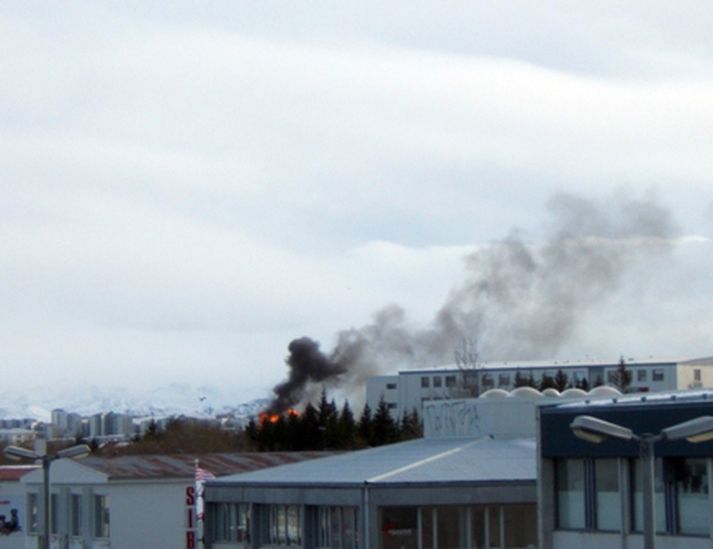 Stórbruni í Síðumúla 34 - Bein útsending 10. mars 2009 16:02 MYND/Daníel Rúnarsson Mikill eldur braust út í Síðumúla 34 í Reykjavík. Slökkviliðið sendi allt tiltækt lið á vettvang. Í húsinu eru meðal annars fyrirtækin Ferskar kjötvörur, Adagio hárstofa og Mótorsport. Íbúar í nágrenninu er beðnir um að loka gluggum og kynda hús sín eins og kostur er. Einnig er fólk beðið um að halda sig frá vettvangi en þetta kemur fram í tilkynningu frá slökkviliðinu vegna brunans. MYND/Jóhann Ómarsson. Svo virðist sem eldurinn hafi brotist út á efstu hæð hússins eins og meðfylgjandi mynd sýnir. Talið er að eldurinn hafi kviknað út frá þakviðgerðum en á efstu hæð hússins er íbúðarhúsnæði. Smelltu hér til þess að sjá beina útsendingu frá myndavél á þaki Orkuveitunnar. Mest lesið Í deilum við nágrannann vegna trjáa Erlent Tvær þyrlur sækja fjóra eftir alvarlegan árekstur á Fagurhólsmýri Innlent Trump telur friðarsamkomulag mögulegt innan nokkurra vikna Erlent „Gamla góða Ísland, bara betra“ Innlent Ferðakostnaður forsetans rúmar tuttugu milljónir Innlent Sakamálin sem einkenndu árið sem er á enda Innlent „Þetta er ansi flókið, en þó ekki svo flókið“ Erlent Ekki boðlegt að þingið hunsi þjóðaratkvæðagreiðslu Innlent Tilhæfulaus líkamsárás í annað sinn og enginn kom til aðstoðar Innlent Minnst einn látinn eftir að tvær þyrlur rákust saman í loftinu Erlent Fleiri fréttir Tvær þyrlur sækja fjóra eftir alvarlegan árekstur á Fagurhólsmýri „Rúllandi rafmangsleysi“ alla daga og tífaldur þungi í árásum „Gamla góða Ísland, bara betra“ Gróður farinn að grænka fyrir norðan Ferðakostnaður forsetans rúmar tuttugu milljónir Sakamálin sem einkenndu árið sem er á enda Ekki boðlegt að þingið hunsi þjóðaratkvæðagreiðslu Margfaldur þungi í loftárásum og kyntákn kveður Afbrot, fjölmiðlastyrkir og stefna Miðflokksins Segir dulda skattahækkun taka gildi á næsta ári Líkamsárás í miðbænum Dró konu eftir gangstétt og lyfti henni svo upp með hálstaki Reyndi ítrekað að stofna til slagsmála við skemmtistað Sjálfvirkir lyfjaskammtarar borgi sig tvöfalt til baka Tilhæfulaus líkamsárás í annað sinn og enginn kom til aðstoðar Keyptu aðstoð vegna leiðréttingar landsframlags og hringferðar ráðherra Frumkvæðisvinna lögreglu að loka fjórum afhendingarstöðum „Fara þarf í raunverulegar aðgerðir“ Hrindir af stað söfnun fyrir föður drengsins Kjartan sækist ekki eftir endurráðningu sem bæjarstjóri Landeldi í vexti og lögregla lokar áfengisverslunum Árekstur á Suðurlandsbraut Ekki talinn tengjast aukinni eldvirkni Handteknir grunaðir um framleiðslu fíkniefna Jarðskjálfti við Kleifarvatn Lögreglumenn eltu lausa hesta Lögregla lokaði Smáríkinu og Nýju vínbúðinni Stöðvuðu menn í ofbeldishug við landamærin Piltur skilinn eftir ber að ofan og skólaus eftir hrottafengna árás Dæmdur fyrir líkamsárás í matsalnum Sjá meira