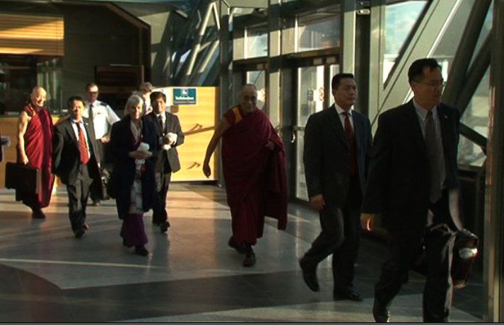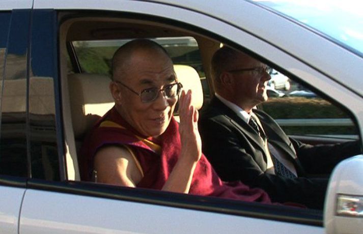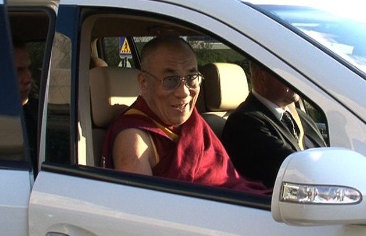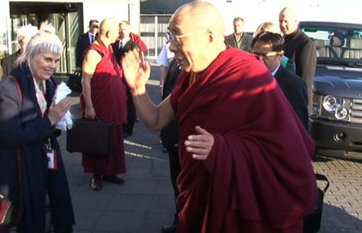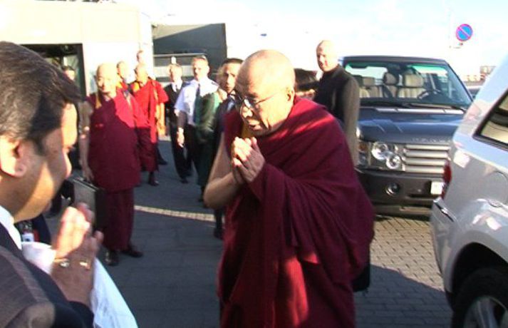 Dalai Lama, andlegur leiðtogi Tíbeta, sem verið hefur í útlegð í hálfa öld kom til Íslands rétt fyrir klukkan 21:00 í gærkvöldi frá Kaupmannahöfn. Lama var hinn hressasti við komuna í Keflavík og heilsaði viðstöddum með virktum að því er segir frá á fréttavef Víkurfrétta. Þá segir í frétt þeirra um málið að nokkuð hafi verið ritað um heimsókn leiðtogans hér á landi. Steingrímur J. Sigfússon, fjármálaráðherra sagði að það væri hverjum ráðherra í sjálfvald sett hvort þeir kysu að hitta Lama. Ekki er vitað að hann sé að hitta neinn af ráðamönnum þjóðarinnar í heimsókninni. Hann mun ræða við fréttamenn á blaðamannafundi í dag. Rjómablíða var í Keflavík í gærkvöldi og Lama og fylgdarlið naut hennar. Lama fór í fremsta bíl í bílaröð sem fylgdi honum til Reykjavíkur. Karlinn opnaði gluggann í hitanum og brosti sínu blíðasta þegar Volvo bifreið þaut af stað með hann til Reykjavíkur.Víkurfréttamyndir/Páll KetilssonVíkurfréttamyndir/Páll KetilssonVíkurfréttamyndir/Páll KetilssonVíkurfréttamyndir/Páll KetilssonVíkurfréttamyndir/Páll KetilssonVíkurfréttamyndir/Páll KetilssonVíkurfréttamyndir/Páll Ketilsson