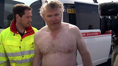 „Auðvitað verður manni brugðið. Maður væri ekki heilbrigður annars. Ég hef verið á sjó síðan ég var krakki og veit hvað sjórinn getur gert. Hann gefur og tekur,“ segir Karl Einar Óskarsson, annar hafnsögumannanna sem voru hætt komnir þegar bát þeirra hvolfdi í innsiglingunni í Sandgerði í gær. Varðskipið Týr hafði verið ásamt dráttarbátum að draga af stað togarann Sóleyju Sigurjóns, sem hafði strandað í innsiglingunni, og var búið að toga hátt í klukkustund þegar skipið losnaði. Samkvæmt tilkynningu Landhelgisgæslunnar voru það landfestar Sóleyjar, sem tengdar voru í hafnsögubátinn, sem drógu hann á hliðina þegar Sóley losnaði, en Karl Einar vill ekki fjölyrða um hvers vegna fór sem fór, ekki fyrr en eftir sjópróf. Karl Einar var sjálfur úti á dekki og fór því beint í sjóinn. Hann var kominn í bát björgunarfélagsins Sigurvonar innan við hálfri mínútu síðar. Skipstjóri bátsins, Aðalsteinn, var hins vegar inni í stýrishúsinu þegar bátnum hvolfdi og birtist ekki ofansjávar fyrr en eftir eina til tvær mínútur. Guðmundur Ólafsson, formaður björgunarsveitarinnar Sigurvonar, segir björgunina sem slíka hafa gengið vel, þangað til bátnum hvolfdi. „Það var svolítið sjokk,“ segir hann. „Það eru sjálfsagt margar ástæður fyrir þessu. En það var verið að draga þrettán hundruð tonna skip og við vorum á tiltölulega mikilli ferð. Þú stoppar ekki þrettán hundruð tonn á einu augnabliki,“ segir Guðmundur. Í gærkvöldi vann köfunarfélag að því að ná hafnsögubátnum úr höfninni með því að koma belgjum á hann. Togarinn Sóley er talinn óskemmdur og sigldi undir eigin vélarafli til hafnar. „Þetta er mjög þykkt stál í honum, byggt fyrir ísinn við Grænland,“ segir Guðmundur. Ekki var vitað hvort olía hefði lekið úr togaranum í gær. klemens@frettabladid.is Guðmundur Ingi Ólafsson laus úr greipum ægis hinn