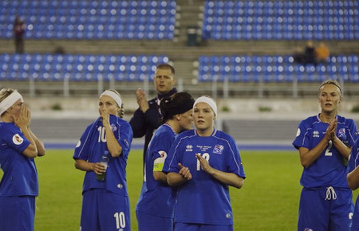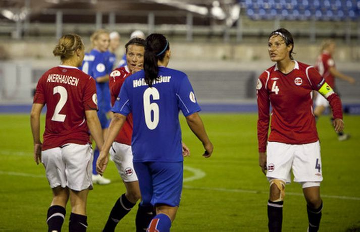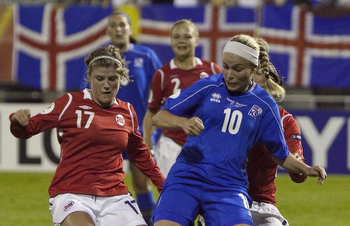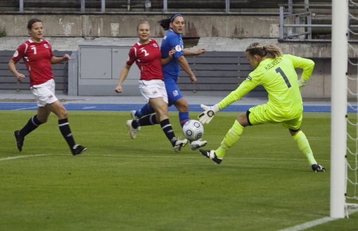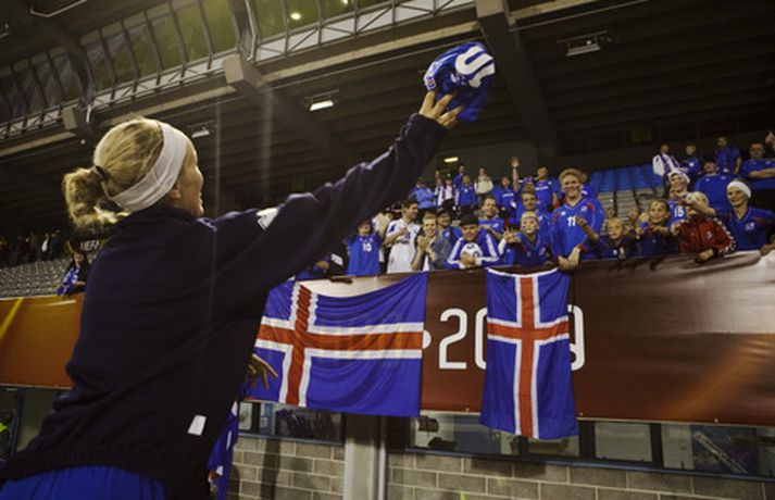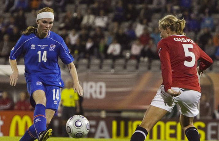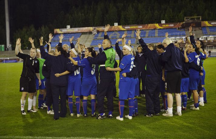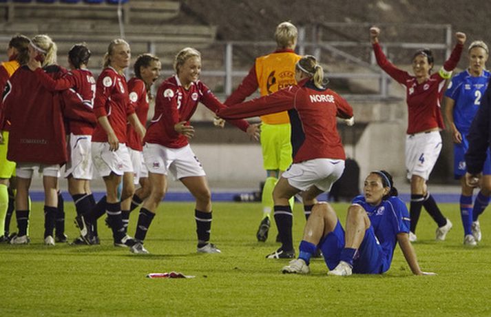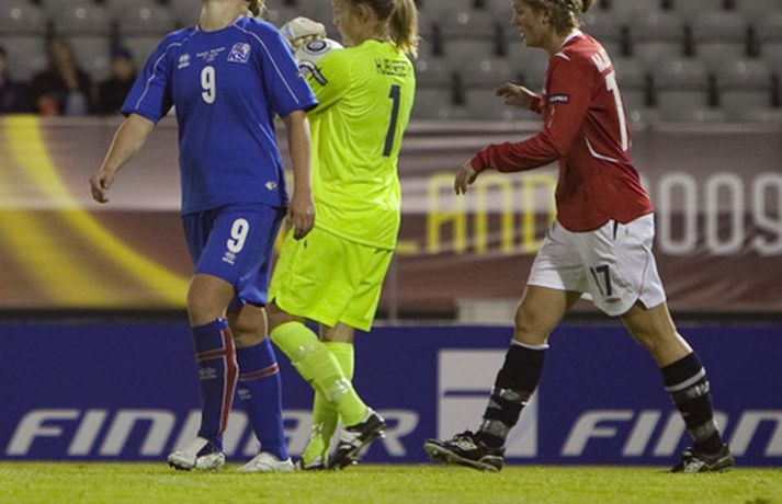 Ísland tapaði í kvöld fyrir Noregi, 1-0, á Evrópumeistaramótinu í Finnlandi en leikurinn fór fram í Lahti. Eins og sjá má voru vonbrigðin mikil eftir leik en áhorfendum var þó þakkað vel og innilega fyrir stuðninginn. Myndasafnið má sjá hér að neðan. Dóra María Lárusdóttir í baráttunni í kvöld.Ossi AholaNorðmenn lesa Hólmfríði Magnúsdóttur pistilinn.Ossi AholaHólmfríður reynir skot að marki í leiknum.Ossi AholaRakel Logadóttir kom inn á sem varamaður.Ossi AholaErna Björk Sigurðardóttir.Ossi AholaMargrét Lára Viðarsdóttir náði ekki að skora í leiknum.Ossi AholaÁhorfendur voru glaðbeittir í Lahti.Ossi AholaEn vonbrigði leikmanna vitanlega mikil.Ossi AholaVeifað til stuðningsmanna.Ossi AholaSem studdu stelpurnar dyggilega.Ossi AholaÁhorfendum þakkað fyrir stuðninginn.Ossi AholaOssi AholaHeppinn stuðningsmaður fékk treyju Dóru Maríu eftir leik.Ossi Ahola