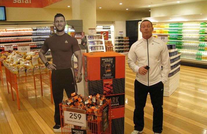 Ívari Guðmunds rænt úr Smáralind - myndir 11. febrúar 2009 15:28 Arnar Grant og Ívar Guðmundsson. Athygli vekur að í Hagkaup Smáralind er pappaútgáfa af Arnari Grant líkamsræktarfrömuði en félagi hans Ívar Guðmundsson sem vanalega stendur honum við hlið er hvergi sjáanlegur. Félagarnir létu útbúa auglýsingaskilti þar sem þeir stilla sér upp hjá heilsudrykk sem þeir selja í eigin nafni. Ívar stillir sér upp við hlið pappa-Arnars í Smáralind. Ekkert hefur spurst til Ívars og enginn starfsmaður verslunarinnar kannast við að hafa séð fólk bera pappaútgáfuna af honum út úr versluninni. Af hverju var þér rænt en ekki Arnari Grant? „Já þetta er góð spurning. Við höfum ekki alveg komist að neinni eðlilegri niðurstöðu í því efni en hefðum gaman af því að vita hvar hún er ef einhver þarna úti veit það," segir Ívar. Meðfylgjandi má sjá myndir af Ívari stilla sér upp hjá auglýsingaskiltinu af Arnari Grant. Mest lesið Sat uppi með sex kíló af kæstri skötu Lífið Viðtöl ársins 2025: Missir, afsögn ráðherra, umsáturseinelti og læknir sem þóttist vera með krabbamein Lífið Jólagjafir íslenskra vinnustaða Lífið Óléttan uppgötvaðist þremur dögum fyrir byrjun skólans Menning Segir son sinn ekki hafa þurft að deyja Lífið Allt í einu orðin mamman sem missti barnið sitt Lífið Þessi smurðu mest á reikning Jommunnar Lífið Kristmundur Axel tók við af Bubba Lífið Michelle Trachtenberg er látin Lífið Seinfeld og Friends-leikari látinn Lífið Fleiri fréttir Viðtöl ársins 2025: Missir, afsögn ráðherra, umsáturseinelti og læknir sem þóttist vera með krabbamein Sat uppi með sex kíló af kæstri skötu Kristmundur Axel tók við af Bubba Seinfeld og Friends-leikari látinn Jólagjafir íslenskra vinnustaða Deildar meiningar um lyktina: „Þetta er byrjendaskata“ Fréttamenn gæða sér á skötu í gegnum árin Laufey á landinu Þar sem vinsælustu lög landsins verða til Þessi smurðu mest á reikning Jommunnar Einhverfir kaþólikkar um allan heim heita Þorlákur Cooper bað móðurina um hönd Hadid „Mér finnst gaman að láta sjokkera mig“ Brúðkaup ársins 2025 Heitt í hamsi hjá gestum á „helvíti á jörðu“ í Breiðholti Chris Rea hefur ekið heim um jólin í síðasta skipti Saga jarðaði alla við borðið Vísa ásökunum Skinner um kosningasvindl á bug Kimmel ávarpar bresku þjóðina: Frábært ár fyrir fasisma „Ég hugsa til þín á hverjum einasta degi“ Stjörnulífið: Óskar tíkunum gleðilegra jóla Veikindi eyðilögðu líka stóru stund Manúelu Hefur misst vini og kunningja vegna skoðana sinna Leitin á Svínafellsjökli sem hefur enn ekki skilað árangri Krakkatía vikunnar: Ísskápastríð, Eivör og Grafarvogur „Við byrjuðum að hlusta á jólalög í júlí“ Frægir fundu ástina 2025 Íslenska stelpan sem gerðist mormóni Fréttatía vikunnar: Rob Reiner, Dóra Björt og fullir unglingar 500 Esjuferðir á árinu: „Sumir hrista bara hausinn og lygna augunum“ Sjá meira