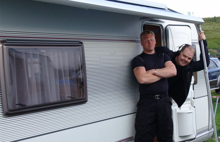 Útvarpsmaðurinn hláturmildi Ásgeir Páll Ágústsson mun senda partívakt Bylgjunnar út úr hjólhýsi á tjaldstæðinu á Flúðum í kvöld. Ásgeir er í raun að senda útvarpsþáttinn út heimanfrá sér þar sem hann er að eigin sögn „Trailertrash par exelance". „Bylgjan er búin að vera á ferðalagi í allt sumar en ég er alltaf skilinn útundan. Einn eftir í Reykjavík. Svo vildi þannig til að ég var boðinn í fimmtugsafmæli um helgina hérna á Flúðum," segir Ásgeir sem sá fram á að þurfa að sleppa afmælinu þar sem Partývaktin er frá 22-03 öll laugardagskvöld. Ásgeir dó þó ekki ráðalaus þar sem hann fékk þá hugmynd að senda partývaktina út frá Flúðum - úr hjólhýsinu. Tæknimenn Bylgjunnar fóru því á fullt til að gera þetta mögulegt og afraksturinn heyrum við á Bylgjunni í kvöld. Það sem færri þó vita er að Ásgeir Páll býr í hjólhýsi. „Ég er búsettur í Austurríki á veturna en hef verið hjá tengdaforeldrum mínum á sumrin. Nú var sá möguleiki ekki lengur fyrir hendi þar sem allt var uppbókað hjá þeim þannig að við hjónin ákváðum að búa í hjólhýsinu. Við erum því nokkurs konar „trailertrash par exelance"," segir hann og hlær. Partývaktin verður send út á tjaldstæði en óttast Ásgeir ekkert að fullir vitleysingar í útilegu fari að angra hann í útsendingunni? „Nei ég á svo sterka konu. Hún er mikið hraustmenni og lemur þá sem hætta sér nærri hjólhýsinu," segir hann kátur og bætir við: „Svo verð með tvo mjög hrausta og blindfulla dyraverði til öryggis." Hægt er að hlusta á partývaktina þegar húm hefst klukkan 22 með því að smella hér.Rúnar Friðriksson stendur vaktina í dyrunum í kvöld. Hvort hann verði blindfullur er allsendis óvíst.