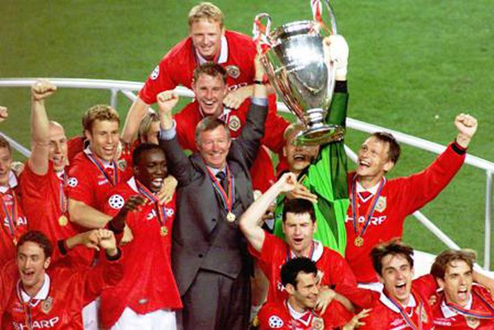 Manchester United átti ótrúlegan endasprett gegn Tottenham um helgina þegar liðið lenti 2-0 undir en vann leikinn 5-2. Þetta var ekki í fyrsta sinn sem liðið tryggir sér sigur með frábærum endaspretti. Breska blaðið Daily Telegraph tók saman tíu eftirminnilega endaspretti sem lið Manchester United hefur átt á síðustu árum, en eins og flestir stuðningsmenn United vita var þetta ekki í fyrsta sinn sem United sallar fimm mörkum í röð á Tottenham eftir að hafa lent undir. Man Utd 2 - Sheffield Wednesday 1 (úrvalsdeildin 1993) John Sheridan kom Wednesday yfir með marki úr vítaspyrnu í síðari hálfleik en varnarjaxlinn Steve Bruce skoraði tvö skallamörk í uppbótartíma og tryggði liðinu sigurinn. Mörk Bruce lögðu grunninn að fyrsta titli United í 26 ár. Man City 2 - Man Utd 3 (úrvalsdeildin 1993) United var slegið út úr Evrópukeppninni af Galatasaray í vikunni áður og lenti 2-0 undir á gamla Maine Road. Það var hinsvegar hinn ótrúlegi Eric Cantona sem fór fyrir liðinu á frábærum endaspretti þar sem harðjaxlinn Roy Keane skoraði sigurmarkið í blálokin. Newcastle 0 - Man Utd 1 (úrvalsdeildin 1996) Newcastle hafði betur fyrsta klukkutímann í æsilegum titilslag á St. James´ Park en Peter Schmeichel varði eins og berserkur í marki United. Það var svo frábært mark frá Eric Cantona sem skoraði sigurmark United og lagði grunninn að hruni Newcastle þetta árið. Juventus 2 - Man Utd 3 (undanúrslit meistaradeildar 1999) Juventus komst snemma í leiknum í 2-0 og þegar Roy Keane fékk að líta gult spjald virtust vonir United um þrennuna renna út í sandinn. Keane skoraði hinsvegar skallamark og þeir Andy Cole og Dwight Yorke tryggðu United glæsilegan sigur og sæti í úrslitunum. Man Utd 2 - Liverpool 1 (4. umferð enska bikarsins 1999) United lenti undir þegar Michael Owen skoraði eftir aðeins þrjár mínútur og virtist vera á leið úr keppni. Dwight Yorke jafnaði hinsvegar þegar tvær mínútur voru eftir og allt leit út fyrir að liðin þyrftu að mætast aftur á Anfield. Norðmaðurinn Ole Gunnar Solskjær kláraði leikinn fyrir United í uppbótartíma, níu mínútum eftir að hafa komið inn sem varamaður. United fagnar Evróputitlinum 1999AFP Bayern Munchen 1 - Man Utd 2 (úrslitaleikur meistaradeildar 1999) Þetta var ef til vill besti endasprettur í sögu United, en hann átti sér stað í úrslitaleik meistaradeildarinnar á Nou Camp í Barcelona. Bayern var komið með aðra höndina á Evrópubikarinn eftir mark Mario Basler snemma leiks, en tvö mörk á þremur mínútum í blálokin frá Teddy Sheringham og Ole Gunnar Solskjær tryggðu United sigurinn og þrennuna. Montpellier 0 - Man Utd 2 (evrópukeppni bikarhafa 1991) Franska liðið var betri aðilinn í 1-1 jafntefli liðanna á Old Trafford í fyri leiknum, en Clayton Blackmore og Steve Bruce tryggðu liðinu óvæntan sigur í síðari leiknum í Frakklandi. Tottenham 3 - Man Utd 5 (úrvalsdeildin 2001) United virtist dauðadæmt eftir að hafa lent undir 3-0 á útivelli í fyrri hálfleik, en fimm leikmenn United komust á blað í ótrúlegum síðari hálfleik. Andy Cole, Laurent Blanc, Ruud van Nistelrooy, Juan Sebastian Veron og David Beckham skoruðu allir í síðari hálfleiknum, Porto 0 - Man Utd 1 (meistaradeild 2009) United var ekki sannfærandi í fyrri leik liðanna á Old Trafford og þurfti að gera það sem engu ensku liði hafði tekist í síðari leiknum - vinna útileik gegn Porto. Eitt fallegasta og eftirminnilegasta mark Cristiano Ronaldo tryggði liðinu farseðilinn í undanúrslitin. Arsenal 1 - Man Utd 2 (undanúrslit enska bikarsins 1999) United virtist í vondum málum eftir að Roy Keane var rekinn af velli og til að bæta gráu ofan á svart, gaf Phil Neville Arsenal víti með því að brjóta af sér í lokin. Peter Schmeichel varði hinsvegar vítið frá Dennis Bergkamp og sigurmark United var frægasta mark Ryan Giggs á löngum ferli þegar hann sólaði hálft Arsenal-liðið upp úr skónum og skoraði.