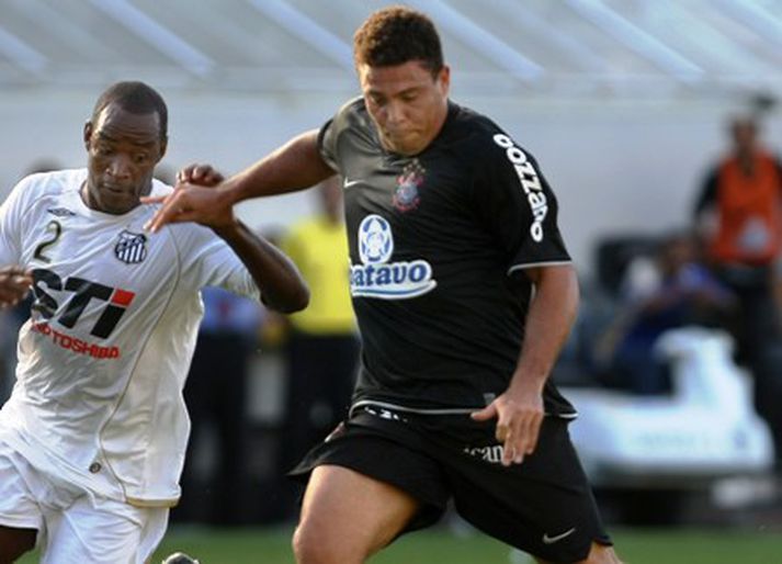 Ronaldo skoraði tvívegis 27. apríl 2009 10:45 AFP Hinn þéttvaxni Ronaldo var á skotskónum fyrir lið sitt Corinthians í gær þegar liðið vann mikilvægan 3-1 sigur á Santos í brasilíska boltanum. Ronaldo skoraði tvö falleg mörk í leiknum og var það mál manna að hinn 31 árs gamli framherji væri óðum að finna sitt gamla form þó hann sé enn greinilega aðeins of þungur. Fótbolti Mest lesið Solskjær ekki lengur líklegastur Enski boltinn Alfreð fagnaði aftur gegn Degi fyrir EM Handbolti Miðvarðaæði Liverpool Enski boltinn Bradley frá út tímabilið | Fer Liverpool á markaðinn? Enski boltinn Magnaður McTominay til bjargar eftir að Conte brjálaðist Fótbolti Sunnlendingar sóttu síðasta farseðilinn eftir mikla spennu Körfubolti Uppgjörið: Frakkland - Ísland 31-29 | Jákvæð teikn þrátt fyrir tap Handbolti Kemi tilþrifin: „Ég skoraði aðeins meira og er myndarlegri“ Körfubolti Pavel hjálpar Grindvíkingum Körfubolti Veik von Man. Utd um titil úr sögunni Enski boltinn Fleiri fréttir Solskjær ekki lengur líklegastur Hákon lagði upp en Endrick sá til þess að Lille félli úr bikarnum Magnaður McTominay til bjargar eftir að Conte brjálaðist Raphinha tryggði Barca titil í fjörugum El Clásico Fletcher segir leikmenn Man. Utd viðkvæma Bayern bauð upp á átta marka sýningu eftir jólafríið Veik von Man. Utd um titil úr sögunni Loksins unnu Hamrarnir eftir framlengdan leik Nkunku braut hjörtu Alberts og félaga Tómas áfram á toppnum Martinelli og hornspyrnur hetjurnar Bradley frá út tímabilið | Fer Liverpool á markaðinn? Viðsnúningur hjá Leeds sem fer áfram Miðvarðaæði Liverpool Gekk í skrokk á liðsfélaga í miðjum leik Minntust nýlátins félaga og foreldrarnir mættu í klefann Nýr stjóri Chelsea fékk óskabyrjun Salah sendi Egypta áfram í undanúrslit Hildur lenti í ótrúlegri hakkavél Draumur Villa lifir en eru dagar Franks taldir? Draumaprinsinn Benoný sendi aðdáendum kveðju Zidane gat ekki stöðvað för Nígeríu í undanúrslit Semenyo skoraði eitt af tíu og Hákon hélt hreinu Newcastle áfram eftir bráðabana og mikla dramatík Róbert með þrennu í sigri KR Varði öll þrjú vítin og Sunderland áfram Stoltur af litla bróður eftir sögulegt afrek Benoný tryggði sigurinn á ögurstundu Utandeildarlið henti meisturunum úr keppni Fram lagði Leiknismenn Sjá meira