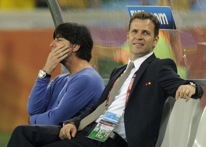 Bierhoff: Fjarvera Thomas Muller breytir miklu Hjalti Þór Hreinsson skrifar 6. júlí 2010 12:30 Bierhoff með landsliðsþjálfaranum Joachim Löw. AFP Oliver Bierhoff, fyrrum framherji Þýskalands og núverandi liðsstjóri, segir að það skipti hreinlega öllu máli að Thomas Muller geti ekki spilað í leiknum gegn Spáni á morgun. Muller verður í banni en annars eru allir klárir hjá Þjóðverjum. "Á stórmótum kemur lið sér í gírinn og því er Thomas hlekkur í keðjunni sem mun vanta. Hann hefur verið aælveg frábær á mótinu," sagði Bierhoff. Cacau, Piotr Trochowski og Mario Gomez gætu allir komið inn í liðið fyrir Muller. "Liðið hefur brugðist ótrúlega við því þegar lykilmenn vantar en fjarvera Thomasar er áfall," sagði Bierhoff. HM 2010 í Suður-Afríku Mest lesið Bunting dró orð sín til baka með tárin í augunum: „Ég er ekki meistari fólksins“ Sport Sakaður um svindl á HM í pílukasti Sport Sjáðu geggjaðan snúning Alberts áður en hann skoraði frábært mark Fótbolti Áhorfendur ærðust eftir mögulega mark mótsins í fyrsta leik Fótbolti Óskar Hrafn um komu Arnórs Ingva: „Gífurlega dýrmætt fyrir KR“ Íslenski boltinn Klappstýrur Björgvins Karls slógu í gegn Sport Ótrúleg tíðindi á HM í pílukasti: „Mikið sjokk“ Sport Óttast að Isak hafi fótbrotnað Enski boltinn Hleður Kjartan lofi eftir frábæra frumraun með Aberdeen Fótbolti Í bann fyrir að kasta flösku í barn Körfubolti Fleiri fréttir „Ef þið væruð Antoine Semenyo, hvert mynduð þið fara?“ Freyr himinlifandi með íslensku strákana Sjáðu geggjaðan snúning Alberts áður en hann skoraði frábært mark Óskar Hrafn um komu Arnórs Ingva: „Gífurlega dýrmætt fyrir KR“ Áhorfendur ærðust eftir mögulega mark mótsins í fyrsta leik Sjáðu mörkin: Rogers sá um Manchester United Hleður Kjartan lofi eftir frábæra frumraun með Aberdeen Óttast að Isak hafi fótbrotnað Túfa gerir þriggja ára samning í Svíþjóð Arnór Ingvi orðinn leikmaður KR Albert skoraði í fyrsta sigri Fiorentina Bæjarar aftur á sigurbraut Tvenna frá Rogers tryggði Villa sigur gegn Manchester United Barcelona með fjögurra stiga forskot inn í nýtt ár Alvöru innkoma: Kjartan með stoðsendingu gegn Celtic í sínum fyrsta leik Sandra María hetjan og með þeim markahæstu í Þýskalandi Katla skoraði annan leikinn í röð Tómas Bent og félagar unnu Rangers og náðu átta stiga forskoti á toppnum Breiðablik kaupir Jónatan frá Norrköping Hildur áfram í bikarnum og Amanda enn á toppnum Fimmta sinn sem Arsenal er á toppnum um jólin: Unnu ekki titilinn í fyrstu fjögur skiptin „Viljum við að okkar verði minnst fyrir að vera skræfur?“ „Ef dómarinn hefði sinnt sínu starfi almennilega hefði Romero ekki fengið spjald“ Haaland gaf barnabarni Hareide gjöf Sjáðu mörkin úr enska: Sviptingar, sænskt þema og svakalegar tæklingar Madrídingar anda ofan í hálsmálið á Börsungum Calvert-Lewin hættir ekki að skora Gyökeres skaut Arsenal aftur á toppinn Ronaldo á nærbuxunum lætur Elon Musk efast um sjálfan sig Orri Steinn kominn með nýjan þjálfara Sjá meira
