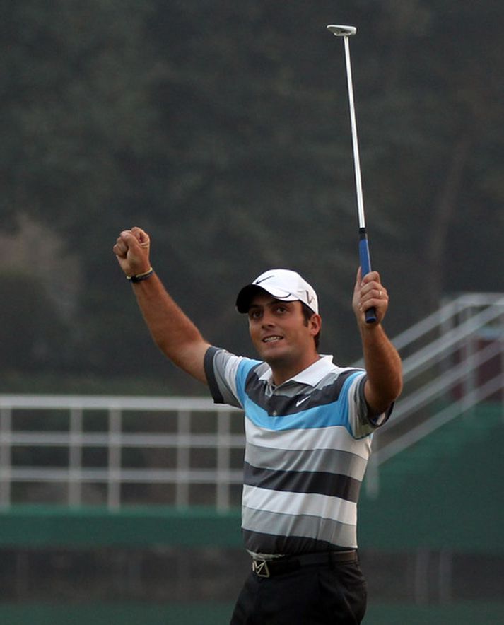 Molinari hafði betur gegn besta kylfingi heims í Kína Jón Júlíus Karlsson skrifar 7. nóvember 2010 14:30 Francesco Molinari Getty Images Ítalinn Francesco Molinari sigraði á HSBC Champions golfmótinu sem lauk í morgun í Sanghæ, Kína. Molinari lék samtals á 19 höggum undir pari og lék einu höggi betur en besti kylfingur heims, Englendingurinn Lee Westwood, sem varð annar. Þeir tveir voru í algjörum sérflokki í mótinu. Þetta er stærsti sigur Ítalans á ferlinum sem hefur fallið örlítið í skuggann af eldri bróður sínum að undanförnu sem var sigursæll í sumar. Fyrir sigurinn fær Molinari litlar 130 milljónir króna. Tiger Woods varð í í 6. sæti í mótinu en hann lék samtals á sjö höggum undir pari og varð því 11 höggum á eftir sigurvegaranum Molinari. Woods mistókst að sigra mót á þessu ári en lítið hefur gengið hjá kappanum á þessu ári. Lokastaða efstu kylfinga: 1. Francesco Molinari -19 2. Lee Westwood -18 3.-4. Luke Donald -9 3.-4. Richie Ramsey -9 5. Rory McIlroy -8 Golf Mest lesið Þessi tíu eru tilnefnd sem Íþróttamaður ársins 2025: 23 ára aldursmunur Sport Sagan ekki sönn: „Veit ekki hvaðan þetta á að hafa komið“ Íslenski boltinn Sakaður um niðurlægingu: „Við viljum ekki hafa hann sem þjálfara“ Handbolti Erfitt að vera í burtu þegar mamma greindist Fótbolti Slot mun sakna Isak í tvo mánuði eftir „glórulausa tæklingu“ Enski boltinn Einn leikmaður með samning og völlurinn ólöglegur Fótbolti Kansas frá Kansas til Kansas Sport Áfallið staðreynd og Isak búinn í aðgerð Enski boltinn Missti alveg stjórn á skapinu en það skilaði sigri Körfubolti Vildi tapa legg: „Mesti hávaði sem ég hef heyrt“ Sport Fleiri fréttir Hættur aðeins þrítugur Guðrún Brá tveimur höggum frá því að öðlast fullan keppnisrétt á LET Mótið hálfnað og Guðrún Brá enn í góðri stöðu Guðrún Brá efst eftir fyrsta hring í Marokkó Íslensku stelpurnar misstu einn keppnisdag vegna eldingarhættu Áminntir fyrir að drekka einn bjór: Sagðir drukknir og hafa tekið „Happy Gilmore-sveiflu“ Ástand í Noregi: Hátt upp í fimm þúsund kylfingar án klúbbs Bananahýði gerði Rory McIlroy erfitt fyrir Dáður en umdeildur kylfingur látinn Gríðarleg fjölgun kylfinga: „Aðstaðan sprungin í höfuðborginni“ Barnabarn Donalds Trump: „Ég sló mörg góð högg, bara á ranga staði“ Vildi ekki svara spurningum um afa sinn, Donald Trump Tóku símana af stelpunum alla keppnisferðina Sjá meira