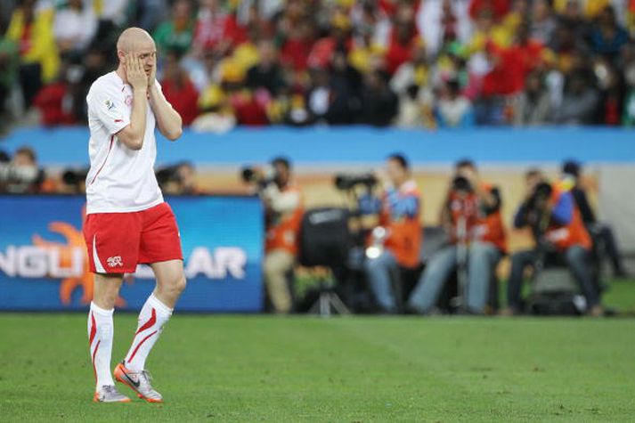 Senderos líklega ekki meira með á HM Hjalti Þór Hreinsson skrifar 18. júní 2010 10:00 GettyImages Philippe Senderos verður að öllum líkindum ekkert meira með á HM. Það er mikið áfall fyrir Sviss sem er í góðri stöðu eftir sigurinn óvænta gegn Spáni. Senderos fór af velli eftir 36 mínútur í leiknum. Hann er meiddur á ökkla, líkt og fyrirliðinn Alexander Frei sem er þó að byrja að æfa aftur. Senderos verður ekki með í leikjunum gegn Chile og Hondúras, í það minnsta. Ef Sviss kemst áfram verður Senderos skoðaður á síðustu stundu fyrir næsta leik. HM 2010 í Suður-Afríku Mest lesið Viðurkenna að VAR hafi bilað Fótbolti Arnar Daði rekinn frá Stjörnunni en áfram þjálfari kvennaliðsins Handbolti Jólagjöf í Keflavík: Remy Martin snýr aftur Körfubolti Koepka fyrsta stjarnan sem riftir samningi við LIV Golf Úr Bestu heim í Hauka Íslenski boltinn Þessi tíu eru tilnefnd sem Íþróttamaður ársins 2025: 23 ára aldursmunur Sport Stefndi á ÓL en fannst látinn á hótelherbergi Sport Heyrði hvorki frá Blikum né Víkingum Íslenski boltinn Ruglaðar lokamínútur í Afríkukeppninni Fótbolti Ótrúlegur sigur á HM: „Ég er mjög tregur svo pressan nær ekki til mín“ Sport Fleiri fréttir Stewart, Snoop og Modric í eina sæng Mahrez batt enda á bið Alsíringa Heyrði hvorki frá Blikum né Víkingum Ruglaðar lokamínútur í Afríkukeppninni Vill ekki segja hversu lengi Bruno er frá Spyr hvort Guardiola stígi á vigtina Viðurkenna að VAR hafi bilað Úr Bestu heim í Hauka „Þetta er stærsti klúbbur Íslands“ Kaupmannahafnarbúi afgreiddi Úganda Arsenal í undanúrslit eftir vító Man. Utd reyndi stíft en Semenyo kaus City Iwobi og Lookman áberandi í sigri Nígeríu „Tölfræðilega séð eiga þeir ekkert að vera í þessari stöðu“ Amanda hætt hjá Twente Jackson hóf Afríkumótið með látum Fullkrug leysir Origi af í Mílanó Versta tímabil Vinícius í mörg ár og samningaviðræður sigla í strand Kongóliðar byrja á sigri Glódís framlengir samninginn við Bayern Chelsea setur sig í samband við Semenyo Sagan ekki sönn: „Veit ekki hvaðan þetta á að hafa komið“ Hætt við að spila í Ástralíu en óvíst hvar leikurinn verður Neymar kominn á lappir og lofar að skora í úrslitaleik HM Jiménez jafnaði bestu vítaskyttu sögunnar Slot mun sakna Isak í tvo mánuði eftir „glórulausa tæklingu“ Sjáðu „auma“ vítið sem skilaði Fulham sigri Erfitt að vera í burtu þegar mamma greindist „Svona lítur frábær ákvörðun út“ Einn leikmaður með samning og völlurinn ólöglegur Sjá meira