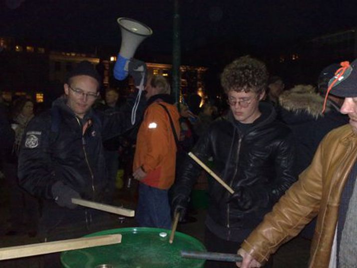 „Það hefur að sjálfsögðu ekki farið framhjá mér að ýmsir þingmenn kalla nú eftir kosningum. Muni nýtt þing, ný ríkisstjórn og tafarlausar kosningar auðvelda úrlausn þeirra viðamiklu verkefna sem framundan eru, þá mun ekki standa á mér að víkja til hliðar," sagði Jóhanna Siguðardóttur, forsætisráðherra, í stefnuræðu sinni á Alþingi í kvöld. „Ég og ríkisstjórn mín munum hins vegar ekki skorast undan því að ljúka þeim verkefnum sem við blasa, sé það vilji þingsins." Á sama tíma og Jóhanna flutti ræði sína heyrðist vel í mannfjöldanum á Austurvelli þar sem bumbur voru barðar. Jóhanna sagði ríkisstjórn Samfylkingarinnar og Vinstri grænna hafa tekið við stjórnartaumunum eftir eitthvert alvarlegasta efnahagshrun síðari tíma. Samt sem áður hafi á ríkisstjórninni tekist á skömmum tíma að ná tökum á efnahagsvandanum og nú horfi fram á betri tíð. „Erlendir sérfræðingar tala jafnvel um kraftaverk í þessu samhengi." Fjölmiðlar ala á sundrungu Hún sagði umhugsunarvert hve fjölmiðlar hér á landi hafi dregið upp dökka mynd af ástandinu og fjallað lítið um þann mikla árangur sem náðst hafi. Þá sagði hún fjölmiðla ala á óánægju og sundrungu. Frá Austurvelli í kvöld.Mynd/Anton Brink Jóhanna sagði ríkisstjórnina hafa lokið eða komið í farveg meirihluta þeirra mála sem kveðið er á um í samstarfsyfirlýsingu stjórnarinnar. „Við höfum komið fjölmörgum framfaramálum í framkvæmd og við höfum ekki látið staðar numið á þeirri vegferð eins og ný 216 mála þingmálaskrá ríkisstjórnarinnar fyrir komandi þing er meðal annars til vitnis um," sagði Jóhanna og bætti við að grunnur hefði verið lagður að mestu uppstokkun í stjórnkerfi og stjórnsýslu hins opinbera á lýðveldistímanum. Bankarnir hafa dregið lappirnar Jóhanna sagði mörg heimili hafa nú þegar fengið skjól eða úrlausn sinna mála með greiðsluaðlögun. „Ég verð að segja í hreinskilni að hinir nýju bankar hafa valdið mér vonbrigðum þegar kemur að skuldaaðlögun fólks og fyrirtækja. Samið var við fjármálastofnanir um að þær kæmu til móts við viðskiptavini sína með sértækri skuldaaðlögun á grundvelli laga." Þá sagði Jóhanna: „Bankarnir hafa dregið lappirnar þegar kemur að því að leysa úr stöðu einstaklinga sem eru að komast í þrot. Við þetta verður einfaldlega ekki unað og stjórnvöld hljóta að fara fram á skýringar og úrbætur. Það gengur ekki að eigur fólks séu settar á uppboð fyrr en allar aðrar leiðir hafa verið fullreyndar. Í einhverjum tilvikum er sú leið hinsvegar óhjákvæmileg og þá verðum við að geta treyst á leigumarkaðinn og félagslegar húsnæðislausnir."