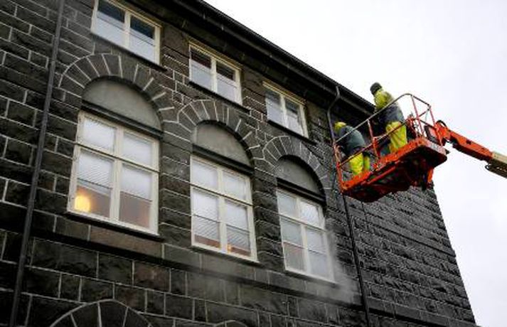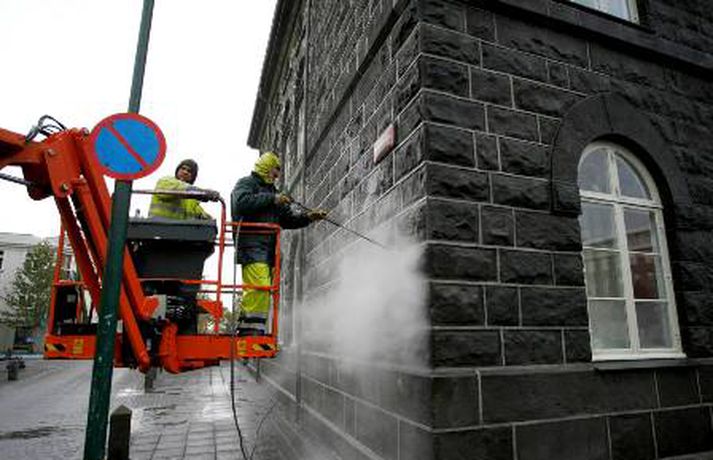 Hreinsunarstarf fór fram í nótt - myndir Jón Hákon Halldórsson skrifar 5. október 2010 09:37 Alþingishúsið var hreinsað í nótt. Mynd/ Pjetur. Hreinsunarstarfsmenn eru langt komnir með að hreinsa Alþingishúsið og Austurvöll en þeir hafa verið að í níu klukkustundir. Einn þeirra sagði í samtali við ljósmyndara Fréttablaðsins að hann hefði aldrei séð annað eins. Eins og þegar hefur komið fram söfnuðust þúsundir manna saman á Austurvelli í gær þegar að forsætisráðherra flutti stefnuræðu sína og umræður um hana fóru fram. Yfir 30 rúður voru brotnar og dýrablóði var skvett á þinghúsið.Mynd/ PjeturMynd/ PjeturMynd/ PjeturMynd/ PjeturMynd/ PjeturMynd/ Pjetur. Mest lesið Töframaður lúbarinn í Garðabæ: „Ég hélt að þetta væri búið“ Innlent „Ég spyr hvernig hefði farið ef ég hefði ekki lifað þetta af“ Innlent „Liggur maður þarna á jörðinni og það var verið að berja hann í stöppu“ Innlent Segir af sér þingmennsku að ákveðnu skilyrði uppfylltu Innlent Spennt að mæta fyrrverandi yfirmanni í kappræðum Innlent Líkurnar á lækkun „mjög litlar“ Innlent „Á yfir höfði sér kærur vegna fjölda umferðarlagabrota“ Innlent Listamenn safna fyrir 10 ára dreng á Selfossi í dag Innlent Dómari krefst þess að Liam og föður hans verði sleppt úr haldi Erlent Björg sökuð um brot á kosningareglum Viðreisnar Innlent Fleiri fréttir Dyravörður tók gest kverkataki Geta stórbætt þjónustu fyrir þau sem greinast með krabbamein Segir af sér þingmennsku að ákveðnu skilyrði uppfylltu Sáttamiðlun úrræði sem væri alls ekki fyrir alla þolendur Spennt að mæta fyrrverandi yfirmanni í kappræðum Dagur kvenfélagskonunnar er í dag 1. febrúar Líkurnar á lækkun „mjög litlar“ Mótmæla og biðla til utanríkisráðherra Nýir oddvitar og sáttameðferð í kynferðisbrotamálum Töframaður lúbarinn í Garðabæ: „Ég hélt að þetta væri búið“ Listamenn safna fyrir 10 ára dreng á Selfossi í dag „Ég spyr hvernig hefði farið ef ég hefði ekki lifað þetta af“ Sprengisandur: Laxeldi, verðbólga og falsfréttir Grunaður um stórfellda líkamsárás „Á yfir höfði sér kærur vegna fjölda umferðarlagabrota“ Ölvuð kona grunuð um að valda umferðarslysi á rafhlaupahjóli Hlýnandi veður í dag og „meinlaus austanlægð“ í kortunum Hilmar Gunnarsson er oddviti í Mosfellsbæ Vilhjálmur Árnason leiðir Sjálfstæðismenn í Reykjanesbæ Baráttan hafi verið Viðreisn til sóma „Lúxusvandamál“ að velja og hafna á listann Stöðvuðu stolinn bíl með naglamottu eftir eftirför um alla borg Sjálfstæðismenn í Reykjanesbæ velja sér oddvita „Vinna er heilsuefling“ Björg sökuð um brot á kosningareglum Viðreisnar Blótað í Grindavík á nýjan leik Vaktin: Björg Magnúsdóttir leiðir lista Viðreisnar í borginni „Liggur maður þarna á jörðinni og það var verið að berja hann í stöppu“ Vilja Hjallastefnugrunnskóla í Árborg Skjálftinn í Bárðarbungu 5,3 að stærð Sjá meira