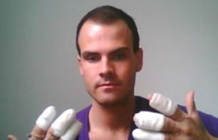 Herra Hinsegin Vilhjálmur Þór Davíðsson skaðbrenndist í vinnunni í gær en hann er vaktstjóri á veitingastaðnum Domo. Við höfðum samband við Villa og spurðum hvað kom eiginlega fyrir? „Ég festi hendurnar í sjóðandi heitri strauvél í vinnunni. Þetta er tæki sem er notað til að strauja servíettur. Það lokaðist á hendurnar á mér," segir Villi og heldur áfram: „Ég er með annars stigs bruna á sex puttum. Ég er búinn að vera að deyja í fingrunum síðan í gær," segir hann greinilega kvalinn.