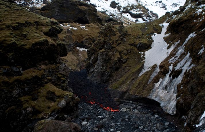 Hraunið færðist um 6 metra á klukkutíma - myndir 26. mars 2010 12:58 Hraunið úr gosinu á Fimmvörðuhálsi færðist um 6 metra á klukkutíma, samkvæmt mælingu félaga úr Björgunarfélagi Árborgar sem fóru inn Hraungil í gærkvöldi. Þeir mældu hitan á vatninu í ánni og mældist það 29 gráður. Ármann ingi Sigurðsson, formaður Björgunarfélagsins, tók þessar myndir í ferðinni. Mest lesið Flugvél lenti í hvolfi í Mosfellsbæ Innlent Áreitt í sturtuklefa Sundhallarinnar í tvígang: „Stend þarna bara náföl og hágrátandi“ Innlent Rifjaði upp hvernig það var að vera ung stelpa með leyndarmál vegna ummæla Snorra Innlent Grunaður í tengslum við eld á heimili eiginkonu sinnar Innlent Íslandi lýst sem „nútíma fámennisveldi“ uppfullu af spillingu Innlent Frambjóðendur Miðflokksins keppast um að fagna fjölbreytileikanum Innlent „Hvað eruð þið að biðja mig um og hvers vegna? Hvar ætti ég að hafa dvalið?“ Innlent „Þessi uppsögn snerist um eitthvað miklu stærra heldur en einn mann“ Innlent Trump segir Írani krúttlega og þeir geti ekki kúgað Bandaríkin Erlent Prestur afþakkar „ömurlegan málflutning“ Miðflokksins Innlent Fleiri fréttir Flugvél lenti í hvolfi í Mosfellsbæ Grunaður í tengslum við eld á heimili eiginkonu sinnar Rifjaði upp hvernig það var að vera ung stelpa með leyndarmál vegna ummæla Snorra Sinueldur við Vík í Mýrdal Frambjóðendur Miðflokksins keppast um að fagna fjölbreytileikanum „Það hafa ekki verið neinir hnökrar hjá okkur“ „Þessi uppsögn snerist um eitthvað miklu stærra heldur en einn mann“ Áreitt í sturtuklefa Sundhallarinnar í tvígang: „Stend þarna bara náföl og hágrátandi“ Sama kona áreitt í sturtuklefa Sundhallarinnar í tvígang Kölluð út á hæsta forgangi vegna sundmanns í Þingvallavatni Íslandi lýst sem „nútíma fámennisveldi“ uppfullu af spillingu Handtekinn grunaður um að hafa ráðist á leigubílstjóra „Hvað eruð þið að biðja mig um og hvers vegna? Hvar ætti ég að hafa dvalið?“ Leiðir saman týnda hluti og eigendur þeirra Hefur áhrif að vera háður umönnunaraðilum „Ég var gjörsamlega svo hissa að ég vissi ekki hvert ég ætlaði“ Meirihlutinn fallinn samkvæmt nýrri könnun „Aðild að Evrópusambandinu myndi skapa stöðugleika“ Olíuverð, starfslok og vinsældir hristibretta Miðflokkurinn á Hornafirði segir ásakanirnar fjarri sanni Prestur afþakkar „ömurlegan málflutning“ Miðflokksins Púlsinn tekur til starfa gegn ofbeldi meðal barna Gripin í tollinum með þrjátíu kíló af amfetamíni Átta vilja tvö laus sæti í Landsrétti Katrín og Sturgeon hlutu Velsældarverðlaun Yfirborð golfvallarins eins og búðingur Sögufrægt og aldursfriðað hús orðið að slysagildru Kynna stafrænt Reykjavíkurkort Takmarkaður áhugi Petoro á Drekasvæðinu Mörg dæmi um að tekið sé sérstakt tillit til umsóknarríkja Sjá meira
