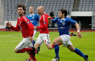 Fram og Valur skildu í kvöld jöfn, 2-2, í fjörugum leik í Laugardalnum. Valsmenn komust 2-0 yfir í fyrri hálfleik en Framarar svöruðu fyrir sig og áttu góðan möguleika á að tryggja sér öll þrjú stigin sem í boði voru. Valsmenn byrjuðu miklu betur í leiknum og náðu yfirhöndinni strax á níundu mínútu leiksins er Guðmundur Steinn Hafsteinsson skallaði fyrirgjöf Jóns Vilhelms Ákasonar í markið. Jón Vilhelm var þá sjálfur nýbúinn að eiga skalla að marki en Hannes Þór Halldórsson varði vel frá honum. Aðeins þremur mínútum síðar fengu Valsmenn tækifæri til að gera nánast út um leikinn er Jón Gunnar Eysteinsson braut á Stefáni Eggertssyni, bakverði Valsmanna, og víti var dæmt. Danni König tók vítið sem var alls ekki slæmt en Hannes Þór varði glæsilega frá honum. Valsmenn héldu áfram að vera með undirtökin eftir og König náði að bæta fyrir klúðrið í vítaspyrnunni er hann skoraði fínt mark með skalla á 31. mínútu. Martin Pedersen átti sendingu inn á teig úr aukaspyrnu og König stýrði knettinum í markhornið. Eftir þetta virtust Framarar einfaldlega vakna til lífsins og fyrst þá byrjuðu þeir að sækja að einhverju ráði. Það skilaði marki í blálok hálfleiksins er Jón Guðni Fjóluson hafði betur í baráttu við Kjartan Sturluson markvörð eftir fyrirgjöf Sam Tillen og skallaði boltann í markið. Það voru semsagt öll mörkin í fyrri hálfleik skoruð með skalla. En þrátt fyrir að þrjú mörk hafi verið skoruð í fyrri hálfleik var sá síðari miklu líflegri og á köflum afar dramatískur. Það byrjaði á því að Kristján Hauksson varði skot Arnars Sveins Geirssonar á línu og stuttu síðar átti Hjálmar Þórarinsson skalla yfir markið úr úrvalsfæri hinum megin á vellinum. Kjartan Sturluson var svo nálægt því að gefa Frömurum jöfnunarmark er honum mistókst að hreinsa boltann frá marki og nánast rétti Tómasi Leifssyni boltann. Honum tókst þó að bjarga sér fyrir horn að lokum. Á 76. mínútu gerðist svo afar sérstakt atvik. Sam Tillen tók aukaspyrnu langt utan af velli sem fór yfir alla leikmenn í teignum og hafnaði í netinu. Þegar Framarar voru að fagna markinu kallaði Kristinn Jakobsson skyndilega Jón Guðna til sín og gaf honum beint rautt spjald. Honum var gefið að sök að hafa sparkað í Danni König sem lá í grasinu í kjölfar marksins. En þrátt fyrir að hafi verið manni færri síðasta stundarfjórðunginn voru Framarar líklegri til að skora sigurmarkið. Besta færið fékk Joe Tillen sem var kominn einn gegn Kjartani markverði eftir sendingu Kristins Inga Halldórssonar. Kjartan varði hins vegar vel frá honum. Þar við sat og bæði lið gengu heldur svekkt af velli. Niðurstaðan var þó líklega sanngjörn.Fram - Valur 2-2 0-1 Guðmundur Steinn Hafsteinsson (9.) 0-2 Danni König (31.) 1-2 Jón Guðni Fjóluson (45.) 2-2 Sam Tillen (76.) Laugardalsvöllur. Áhorfendur: Óuppgefið.Dómari: Kristinn Jakobsson (6)Skot (á mark): 18-9 (10-6)Varin skot: Hannes 3 - Kjartan 8Hornspyrnur: 4-5Aukaspyrnur fengnar: 17-17Rangstöður: 1-0Fram (4-3-3): Hannes Þór Halldósson 7 Daði Guðmundsson 6 Kristján Hauksson 6 Jón Guðni Fjóluson 7 Sam Tillen 7 Halldór Hermann Jónsson 6 Jón Gunnar Eysteinsson 5 Almarr Ormarsson 5 (56. Joe Tillen 6) Tómas Leifsson 4 (78. Jón Orri Ólafsson -) Ívar Björnsson 4 Hjálmar Þórarinsson 5 (88. Kristinn Ingi Halldórsson -) Valur (4-3-3): Kjartan Sturluson 7 Stefán Eggertsson 7 Reynir Leósson 6 Martin Pedersen 8 - maður leiksins Greg Ross 7 Haukur Páll Sigurðsson 6 Sigurbjörn Örn Hreiðarsson 6 (84. Rúnar Már Sigurjónsson -) Jón Vilhelm Ákason 5 (84. Ian Jeffs -) Arnar Sveinn Geirsson 5 Guðmundur Steinn Hafsteinsson 5 (72. Haþór Ægir Vilhjálmsson -) Danni König 6Smelltu hér til að opna Boltavaktina og lesa lýsingu leiksins: Fram - Valur.